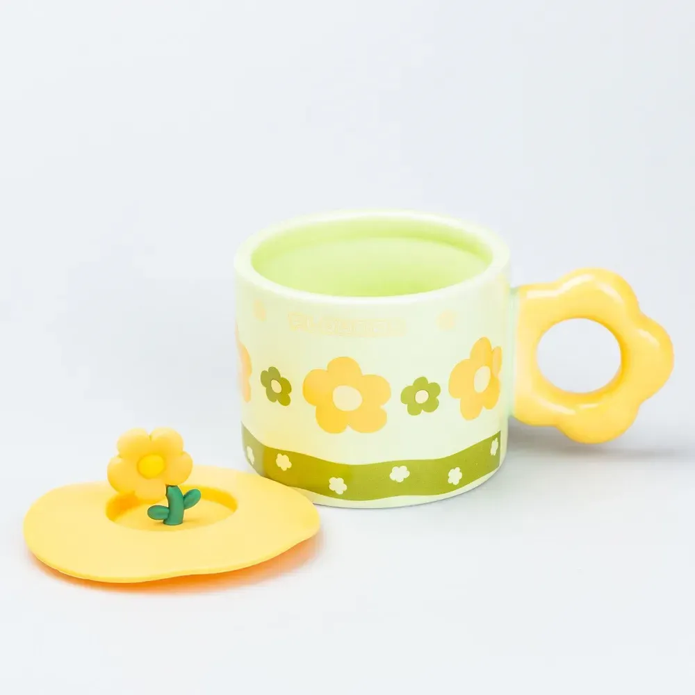 Чашка с крышкой 300 мл керамическая "Цветок" Зеленая (HP7196GR)