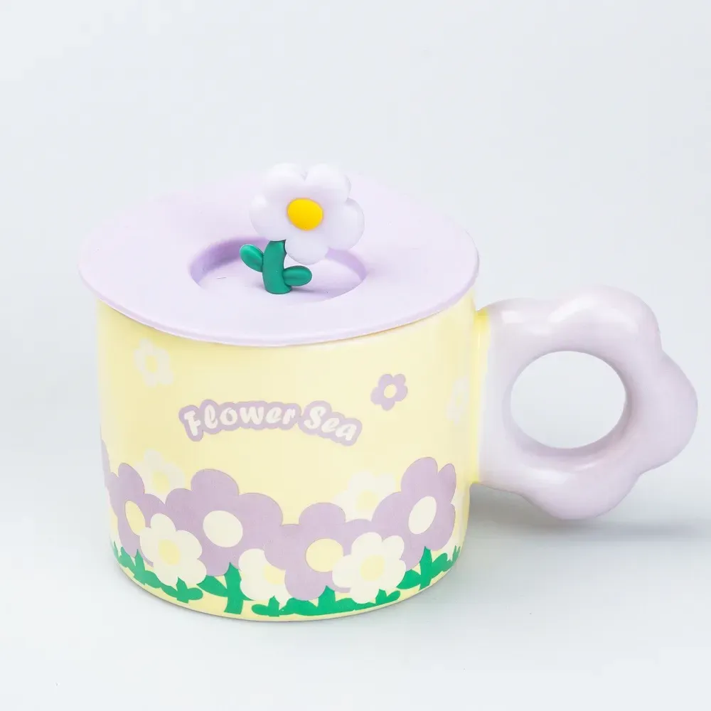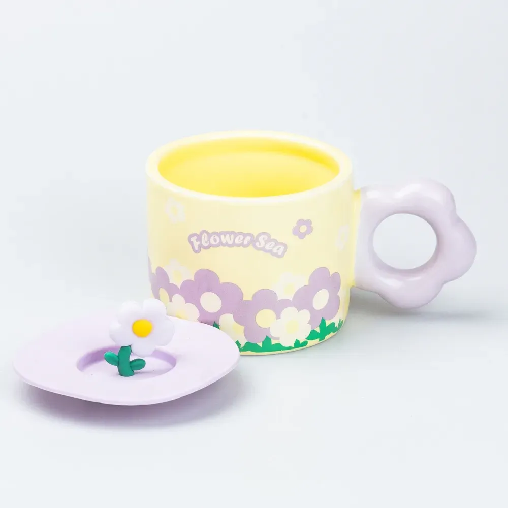 Чашка с крышкой 300 мл керамическая "Цветок" Желтая (HP7196Y)