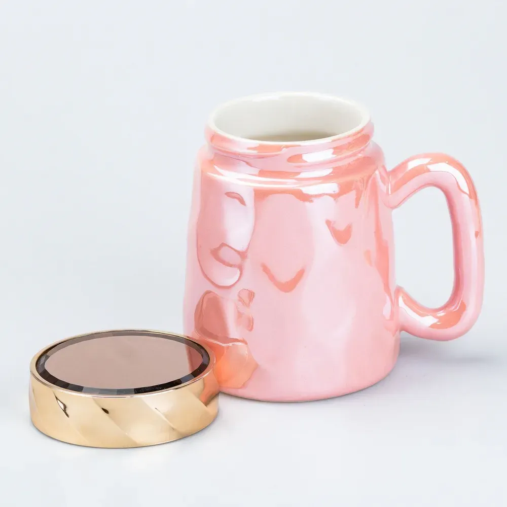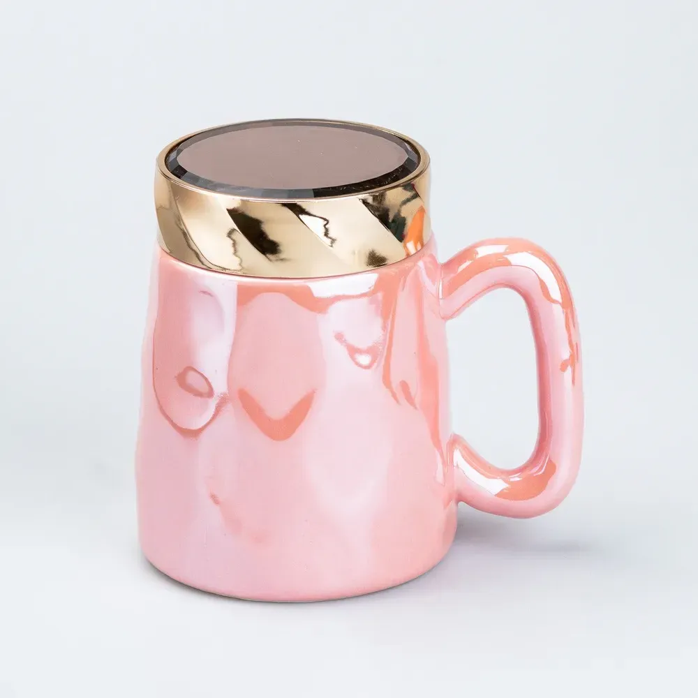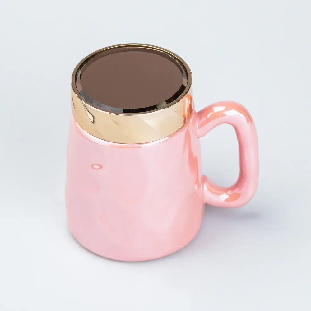 Чашка с крышкой 450 мл керамическая в зеркальной глазури Розовая (HP7195P)