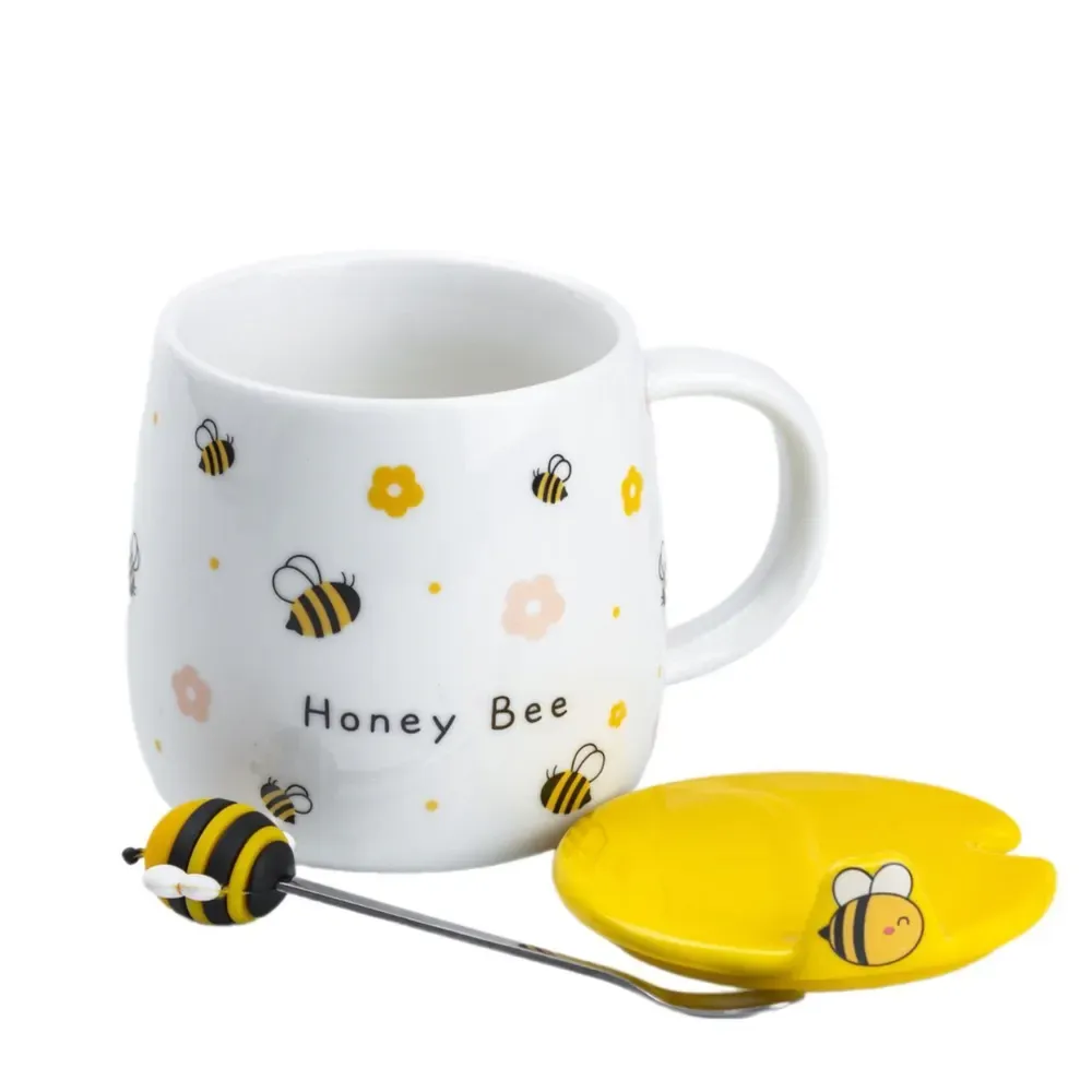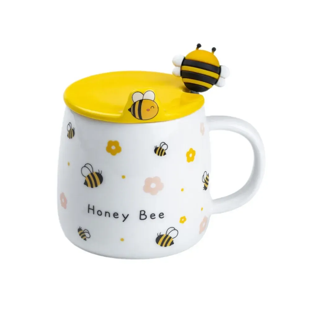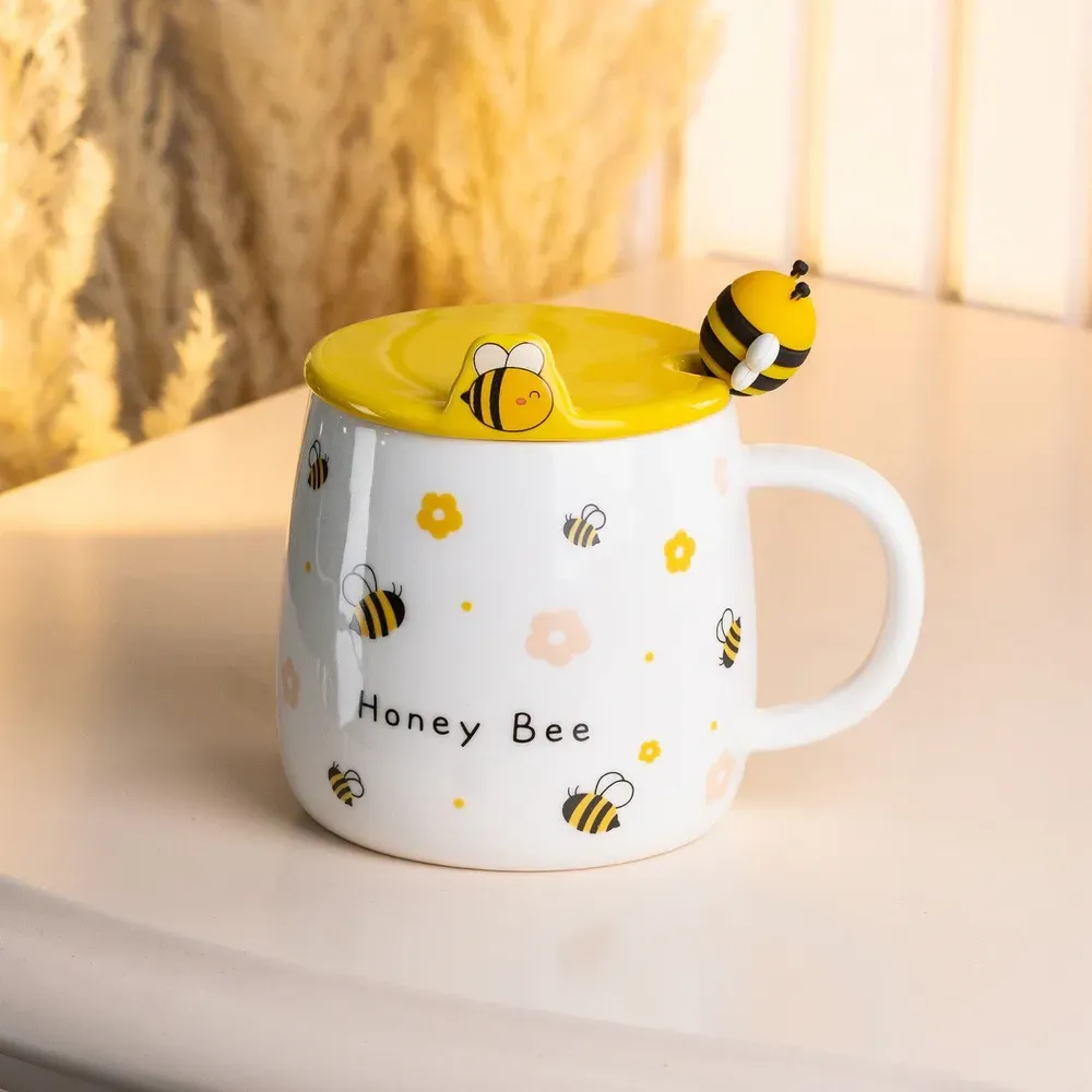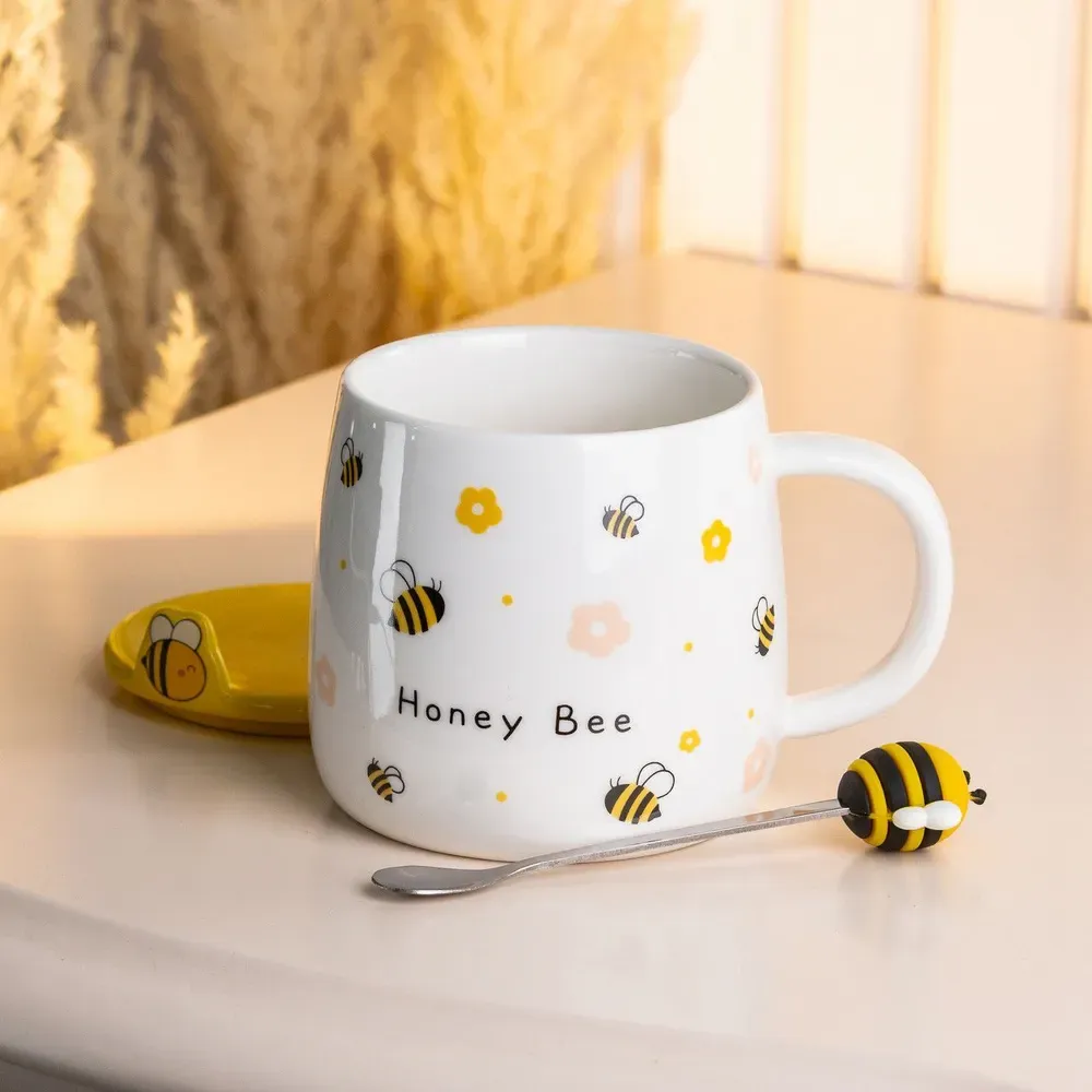 Чашка с крышкой и ложкой 450 мл керамическая "Пчелка" с желтой точечкой (HP7199WY)