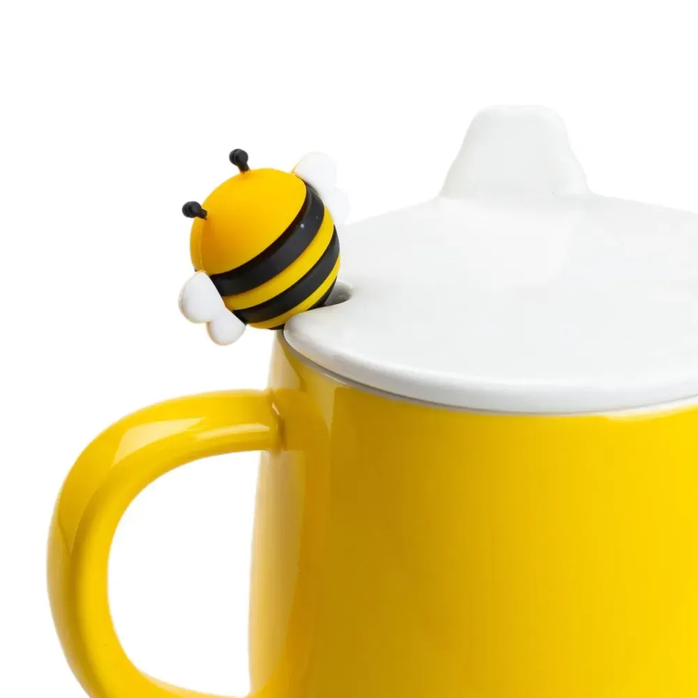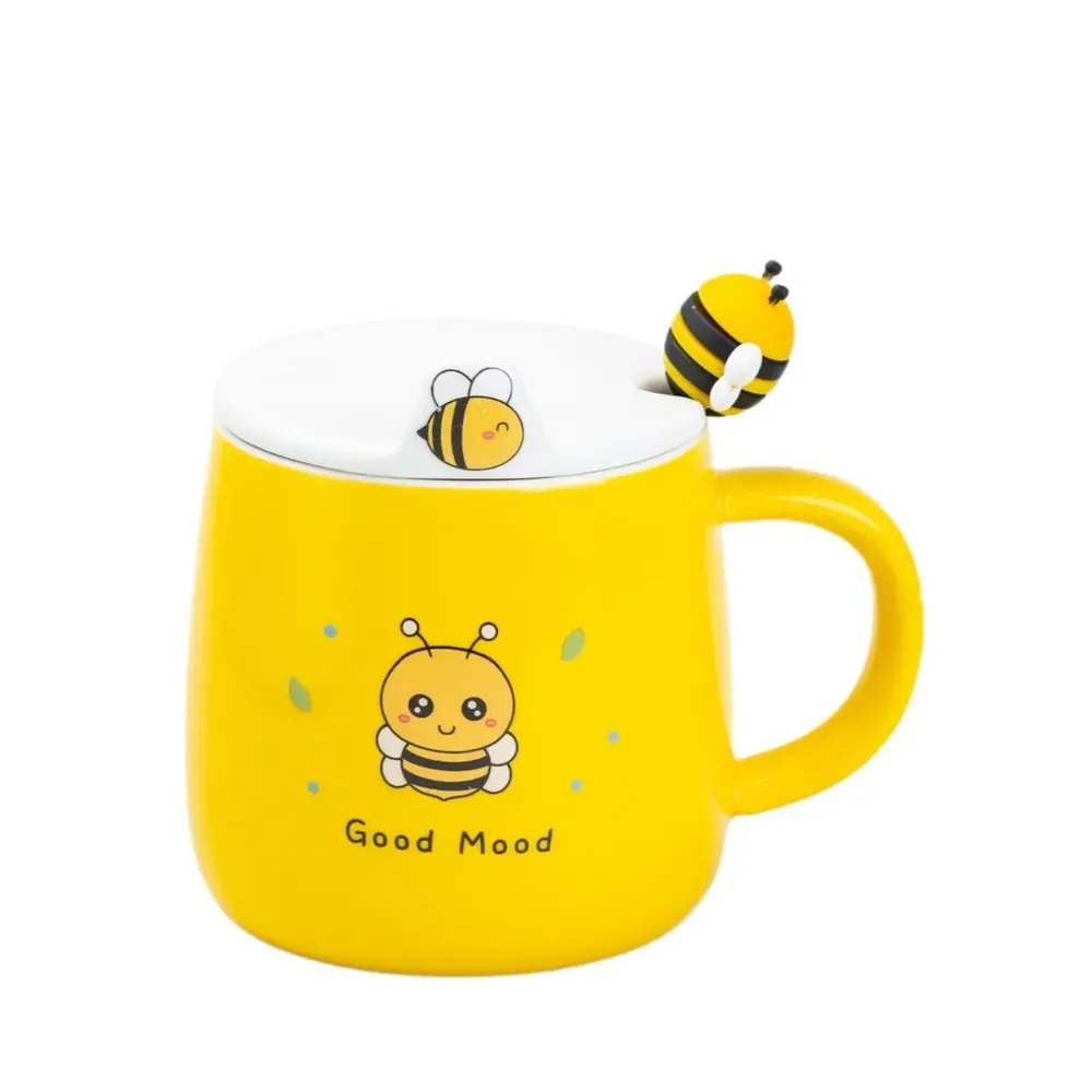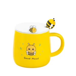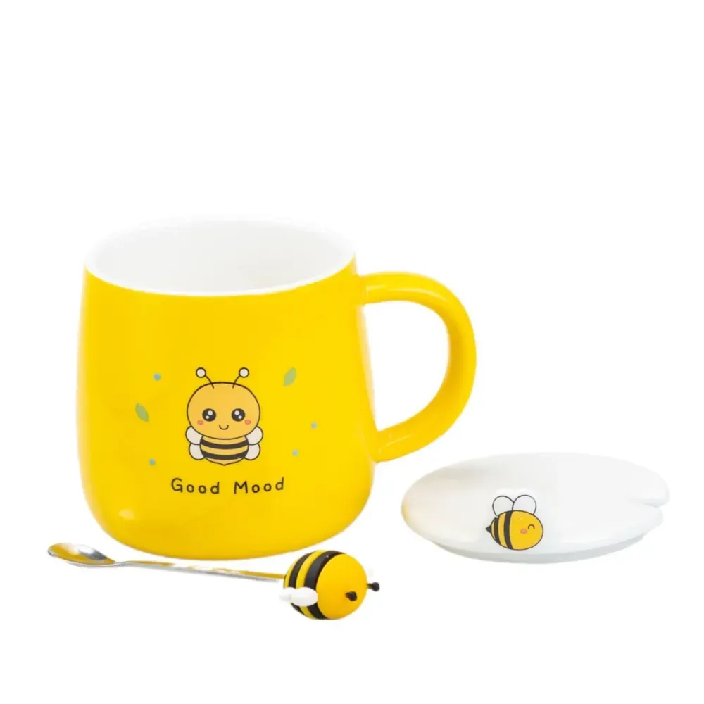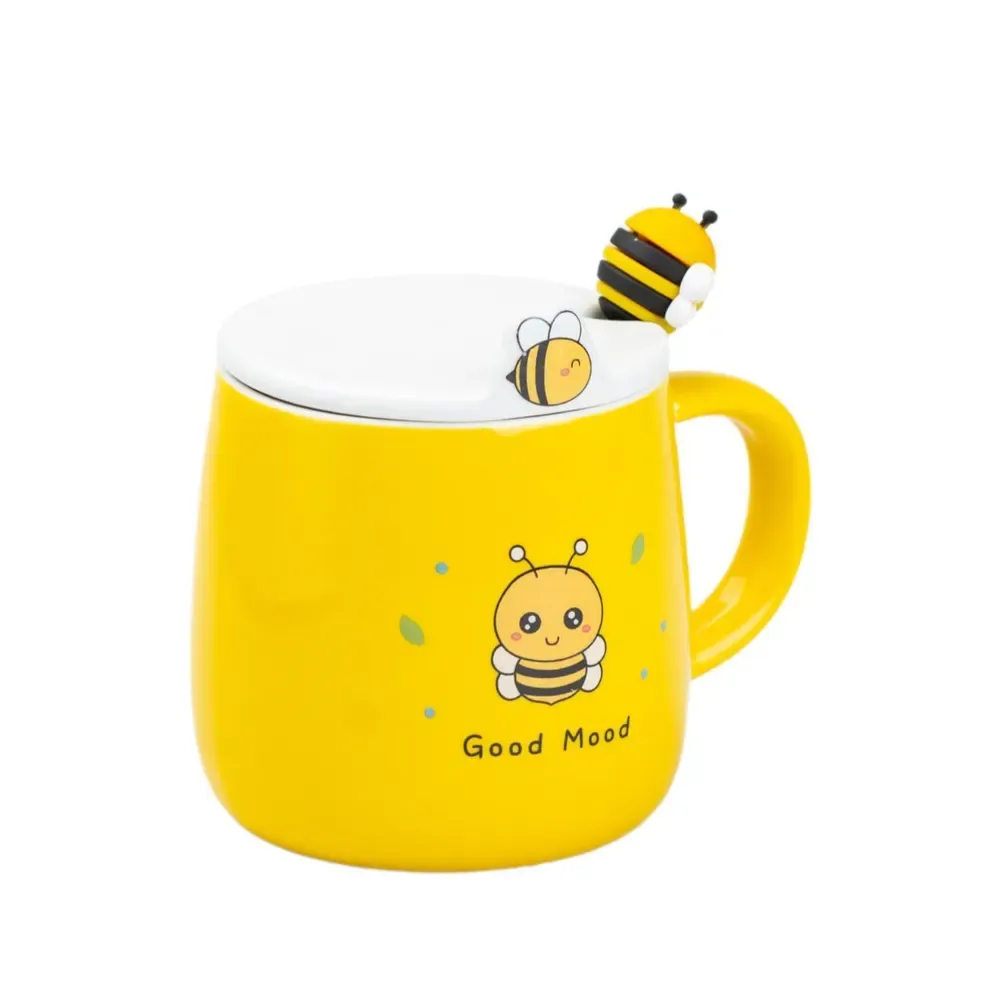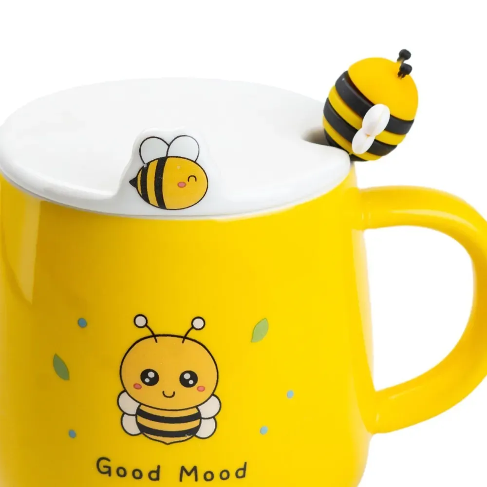 Чашка с крышкой и ложкой 450 мл керамическая "Пчелка" Желтая (HP7199)