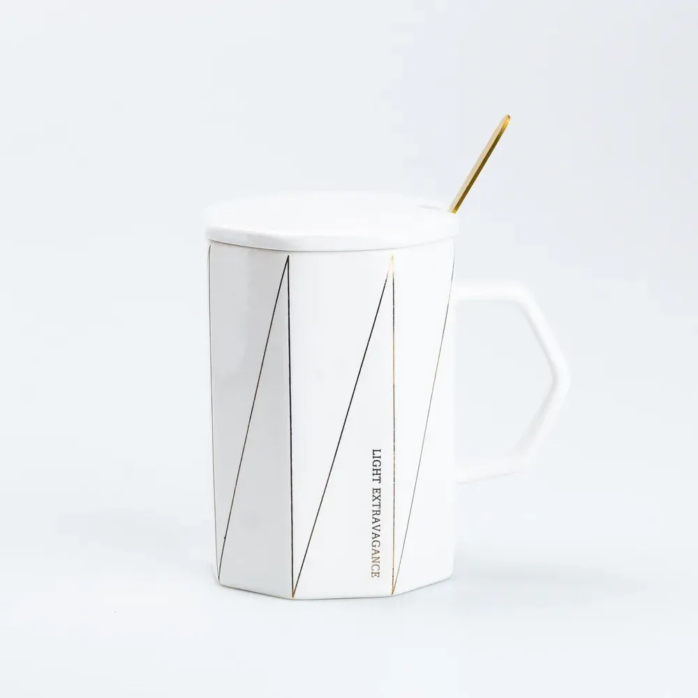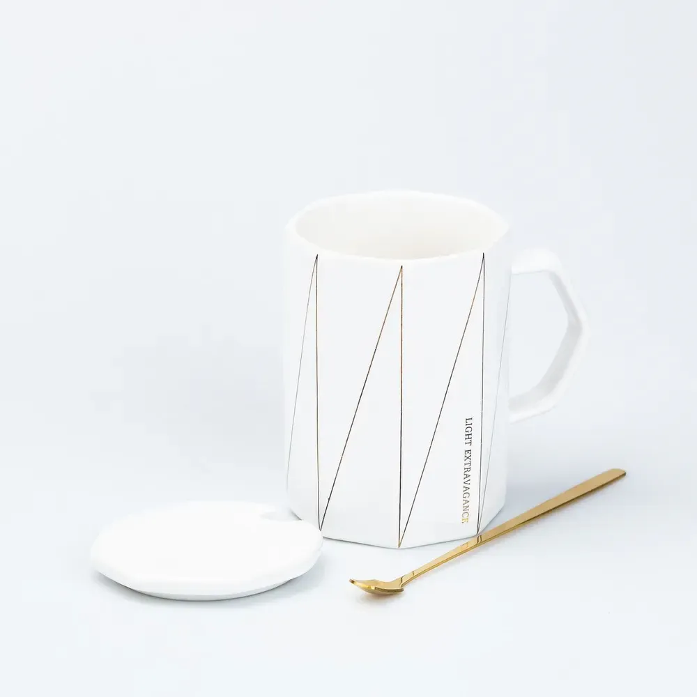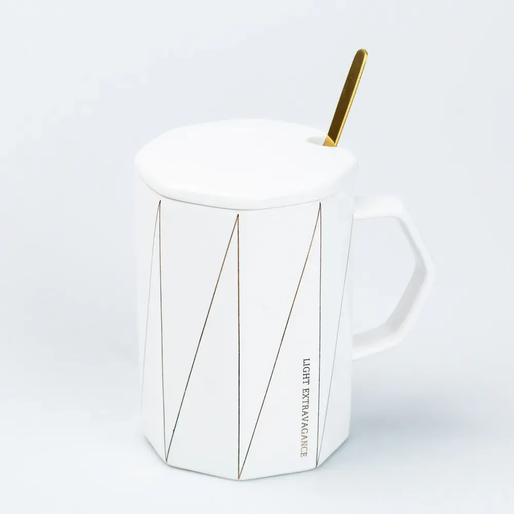 Чашка с крышкой и ложкой керамическая 400 мл Белая (HP7206W)