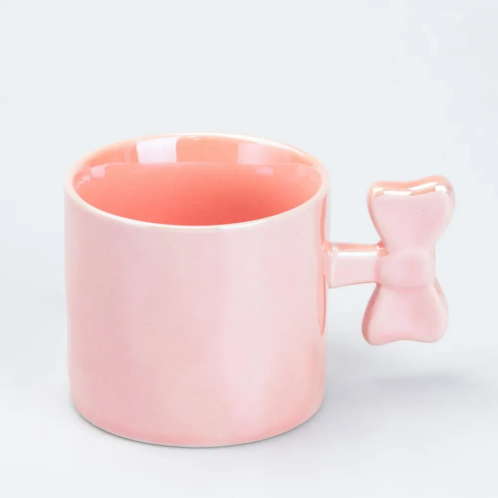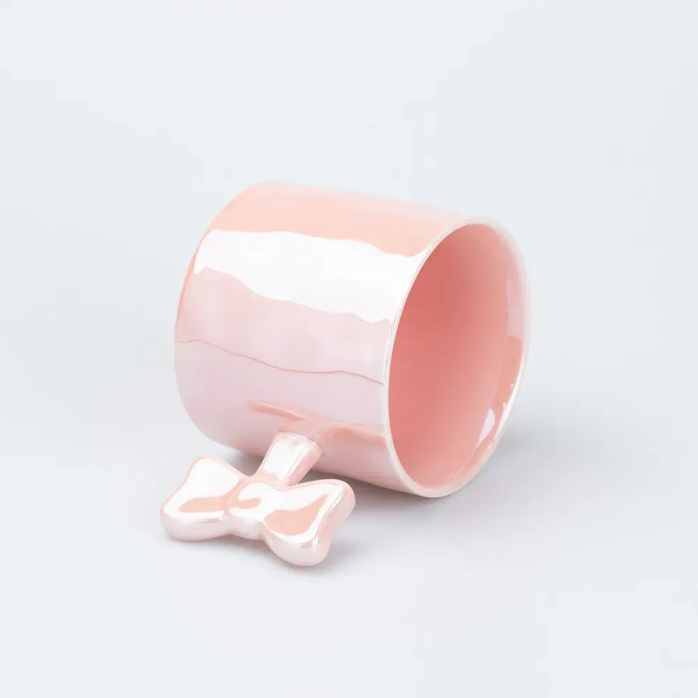 Чашка с ручкой в виде керамическая бантика 350 мл Розовая (HP7185P)