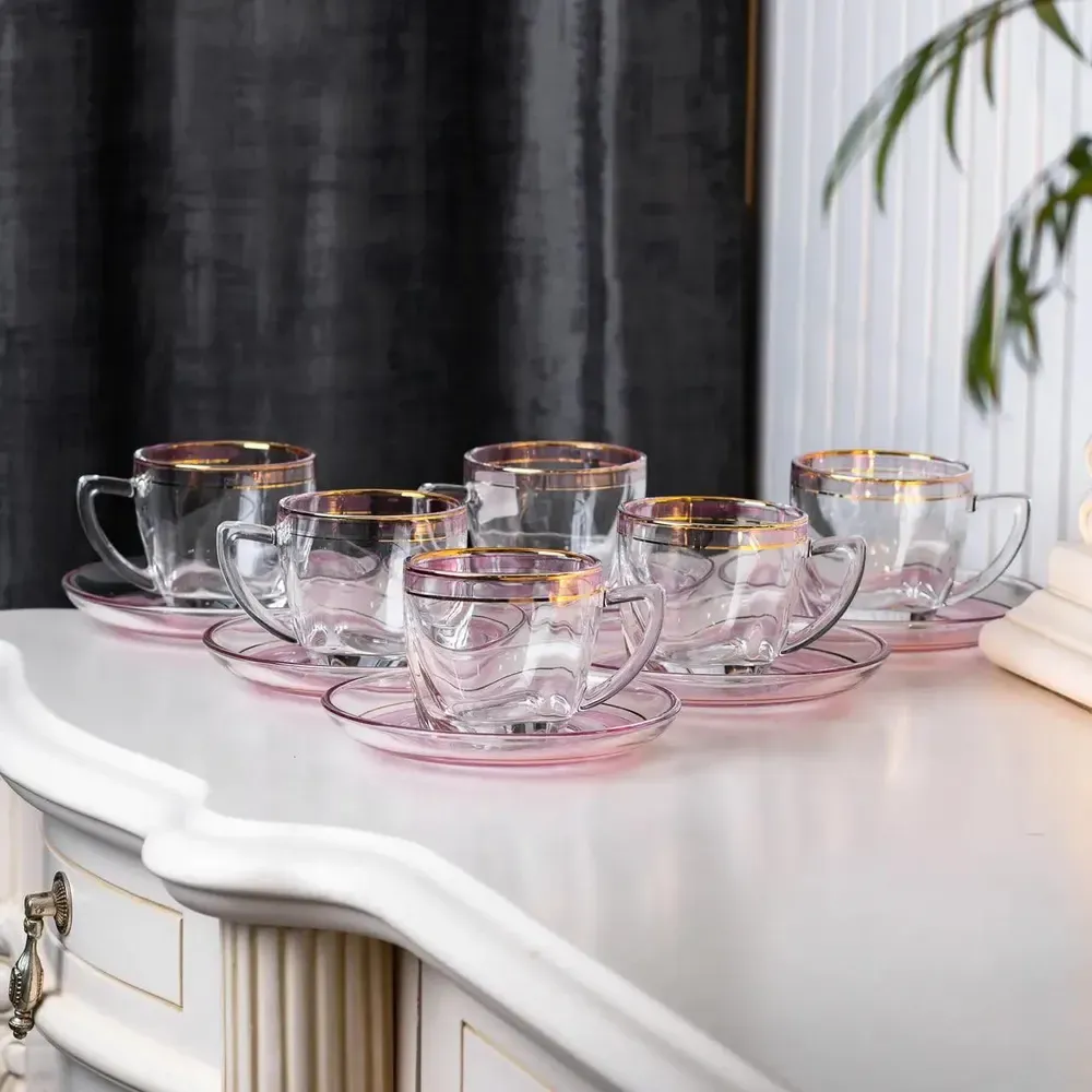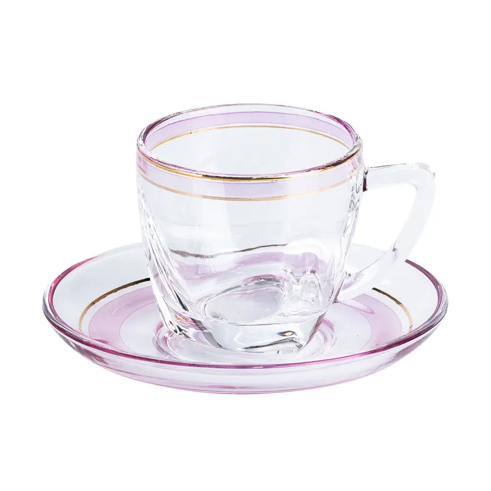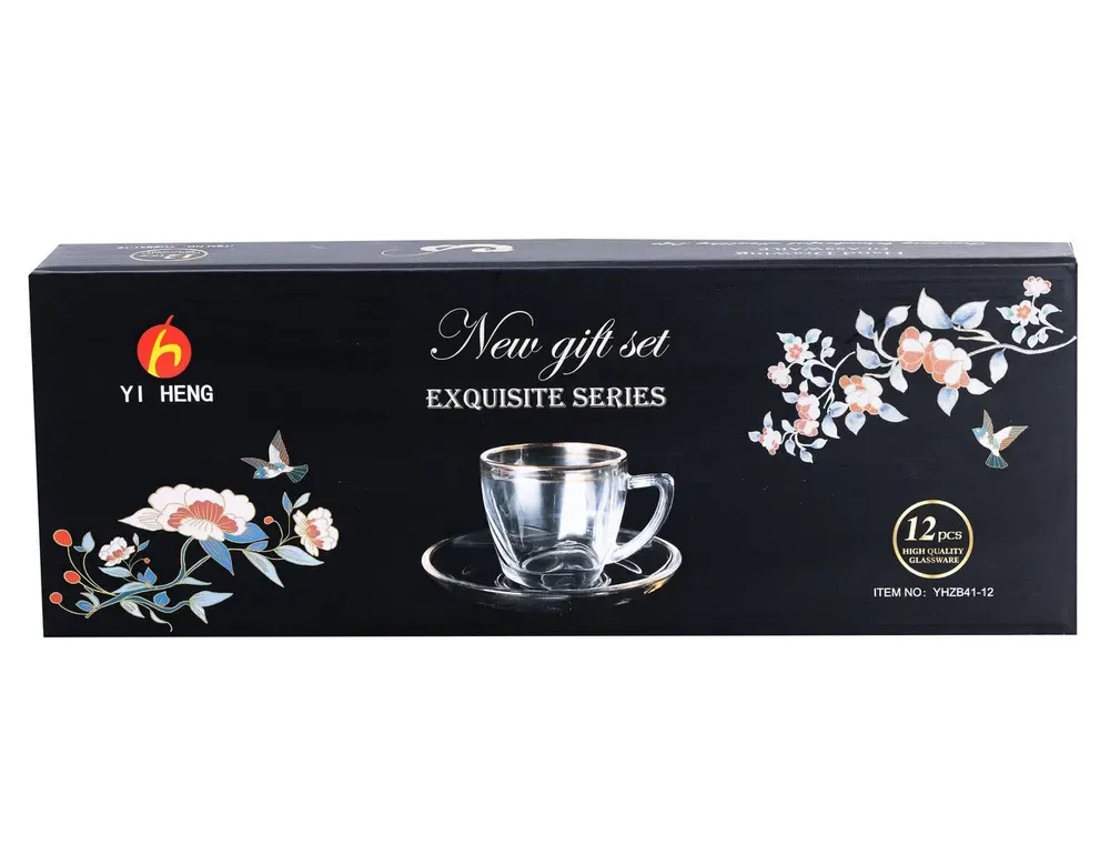 Чашка со блюдцем стеклянные прозрачные набор на 6 человек (HP571)