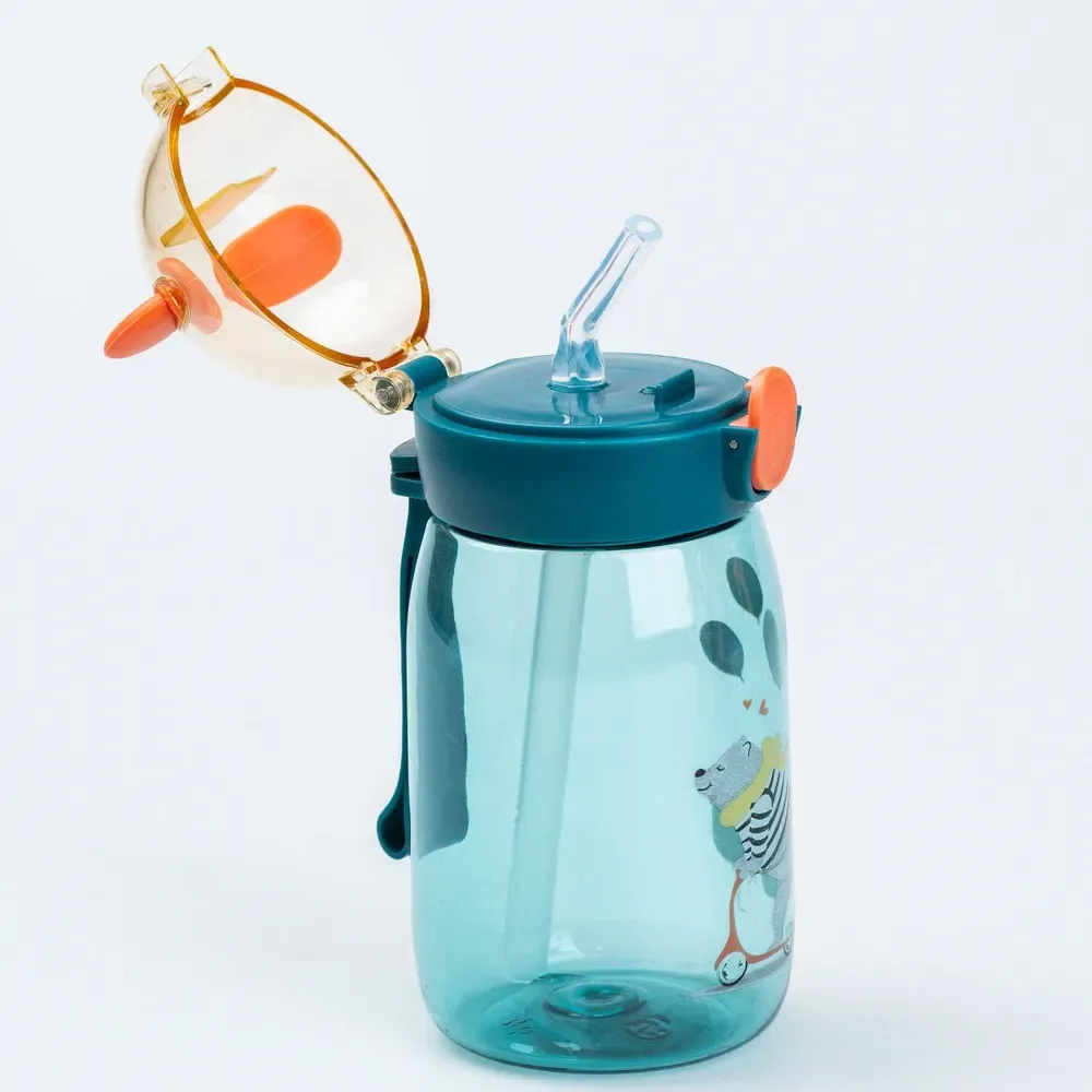 - Практичность: герметичная крышка и силиконовая трубочка защищают от протечки, а ремешок позволяет удобно носить бутылку. собой.