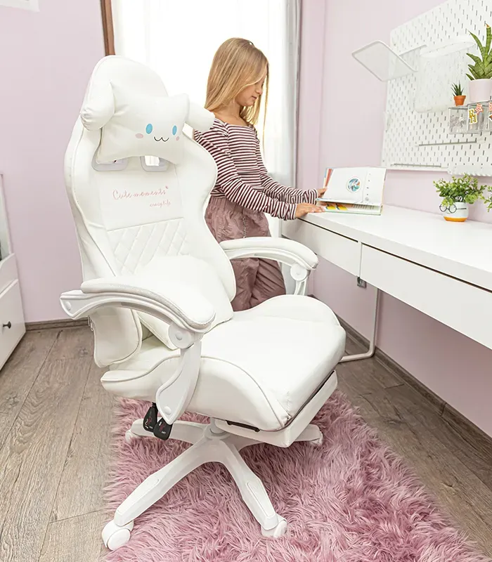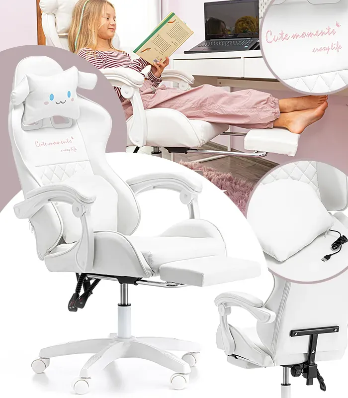 Дитяче геймерське крісло G894 з подушками та підставкою для ніг, Біле