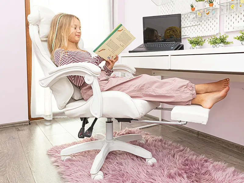 Регульована спинка стільця дає нам можливість ідеально налаштувати її під час гри, відпочинку або занять за комп'ютером. Правильне положення сидіння у дітей дуже важливе, щоб уникнути проблем зі спиною в зрілому віці. Крім того, рухливі подушки можна відрегулювати відповідно до вигину дитини. Під сидінням знаходиться важіль, який дозволяє заблокувати налаштування крісла. Якщо залишити крісло розблокованим, воно перетвориться на зручну гойдалку.