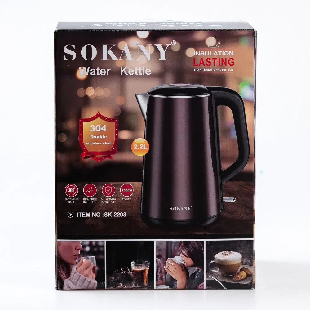 Электрочайник Sokany SK-2203- это удобный и надежный кухонный прибор, который обеспечивает быстрое и комфортное кипение воды для приготовления чая, кофе или других горячих напитков.