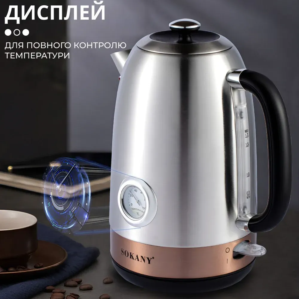 Электрочайник бесшумный из нержавеющей стали с термометром 1,7 л 2200 Вт Sokany SK-1031 (SK1031SS)