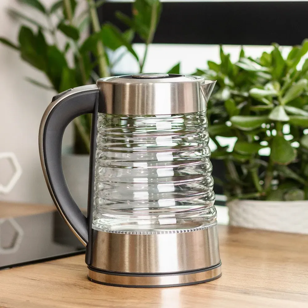 1. Стеклянный корпус. Стеклянный прозрачный корпус позволяет видеть уровень воды внутри чайника, что удобно для контроля и заполнения воды.