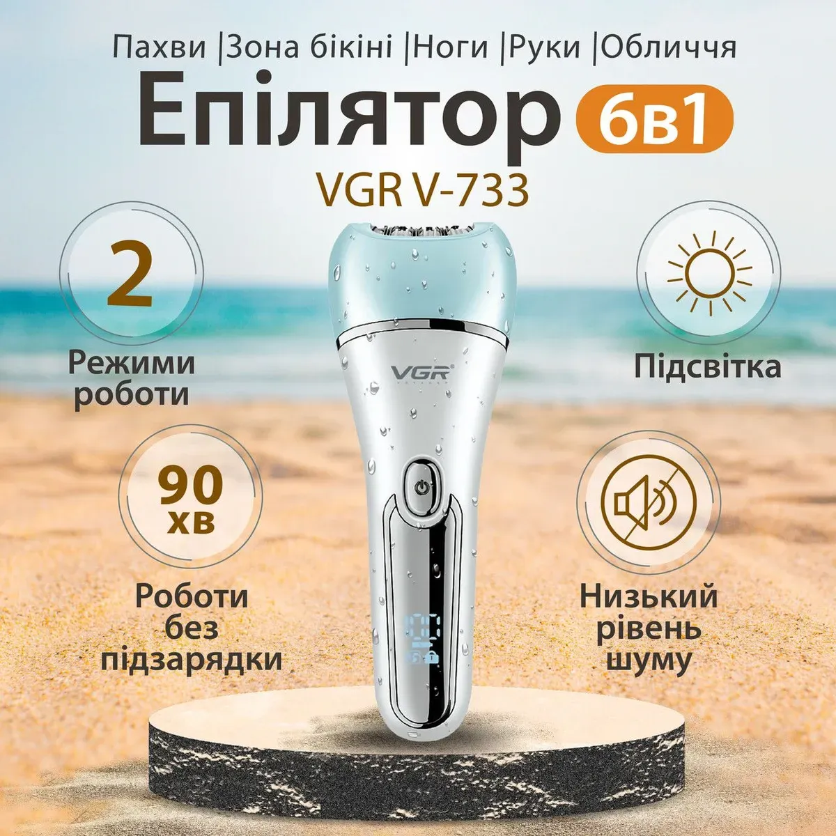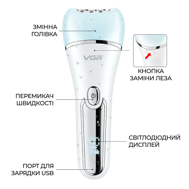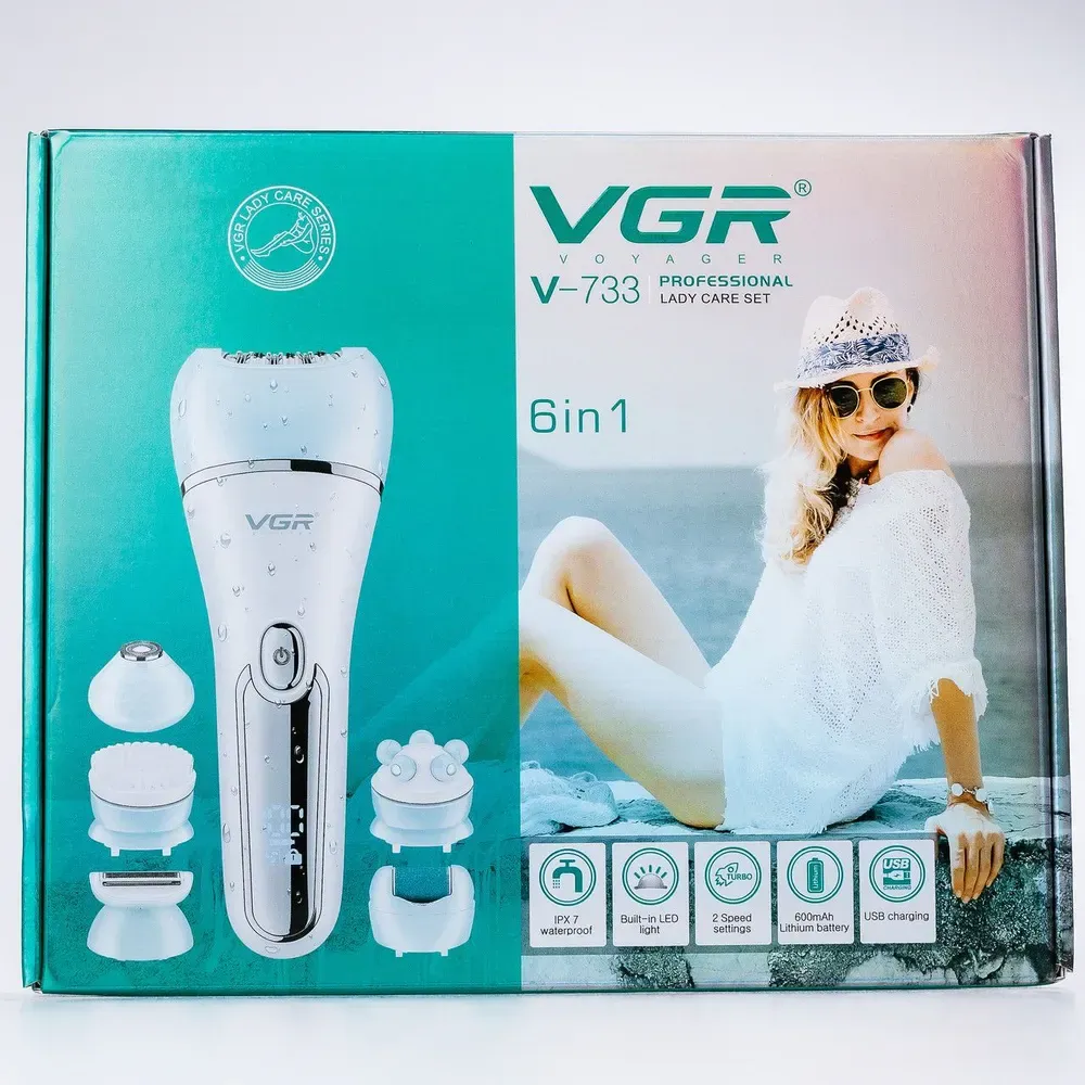 Эпилятор аккумуляторный для лица и тела женский 6 в 1 VGR домашний триммер USB VGR V-733 (V733BL)