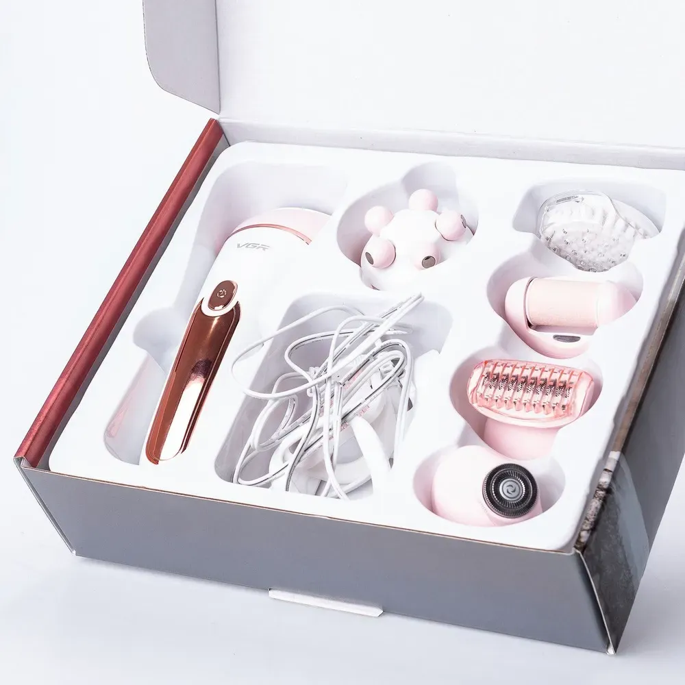 Эпилятор аккумуляторный для лица и тела женский 6 в 1 VGR домашний триммер для удаления волос 2 скорости USB