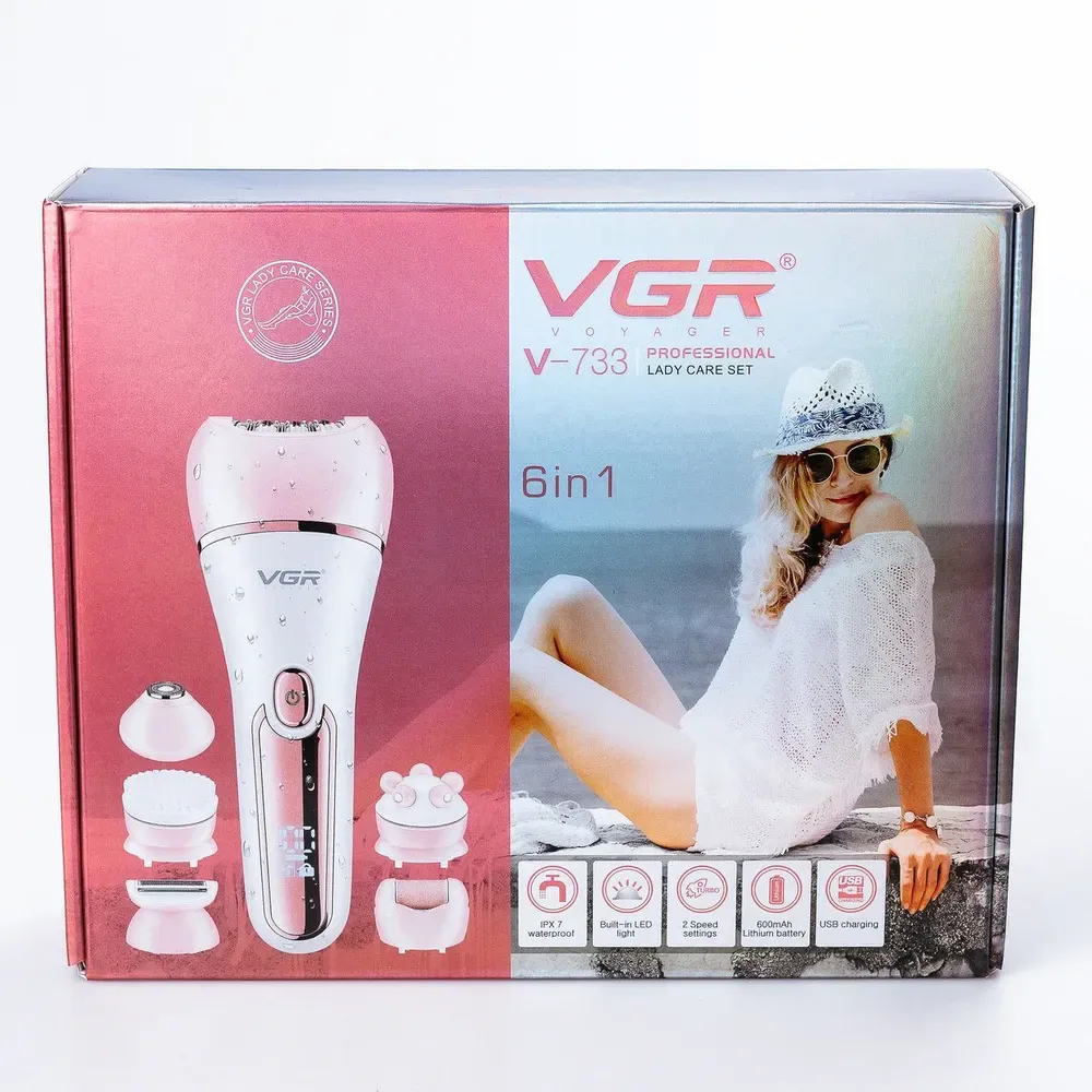 Эпилятор аккумуляторный для лица и тела женский 6 в 1 VGR домашний триммер USB VGR V-733 (V733P)
