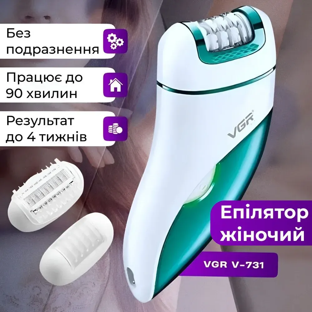 Женский эпилятор VGR V-731 3 в 1 отличается своей универсальностью и многофункциональностью, предоставляя возможность выбора между эпиляцией, триммером и депиляцией в зависимости от личных потребностей. и наличие специальных насадок и функций способствует уменьшению боли и раздражению во время процедуры.
