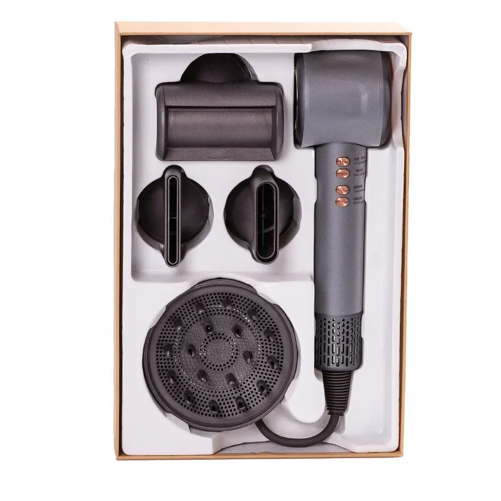 Фен профессиональный для волос нового поколения 4 насадки 3 режима работы ионизация 1500 Вт Х-13 Серый