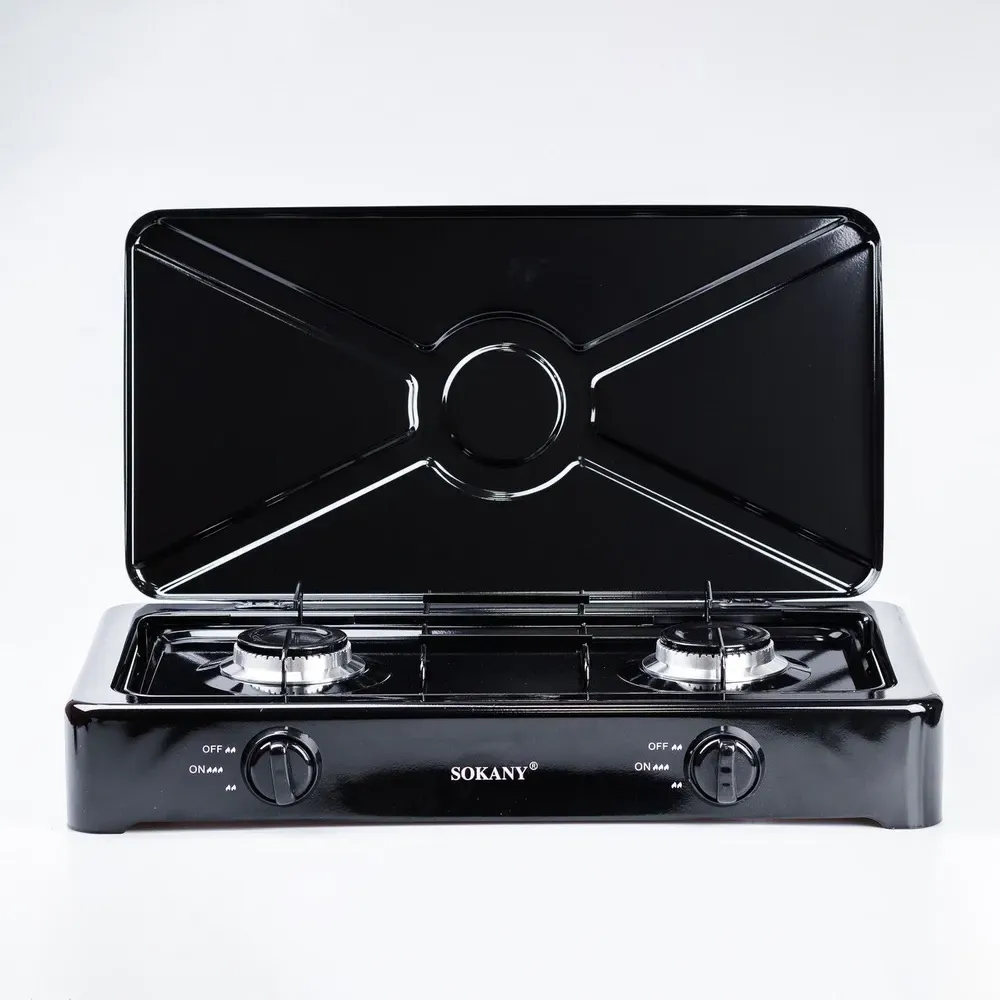 Газовая плита настольная портативная на 2 конфорки с крышкой (SK07004)