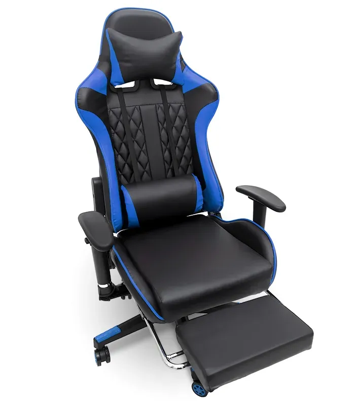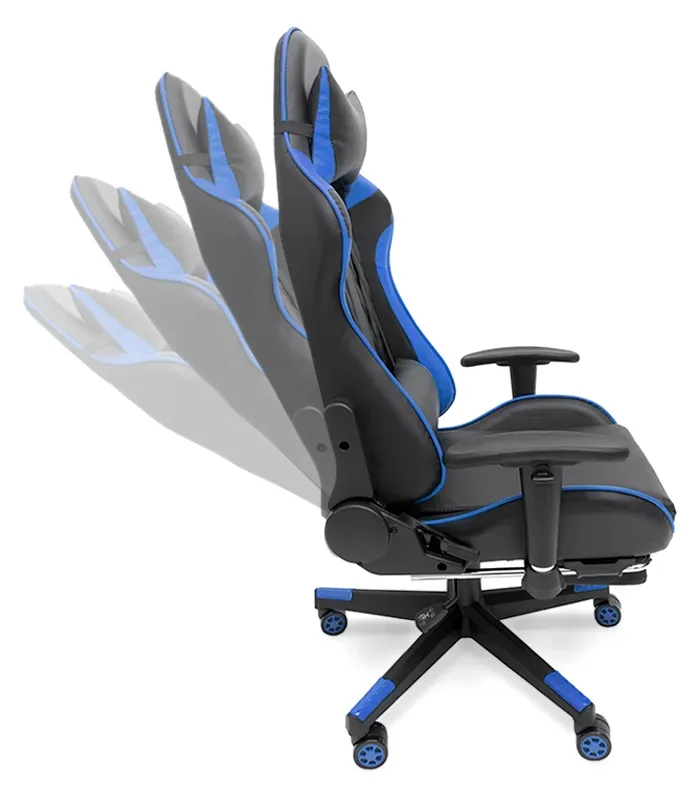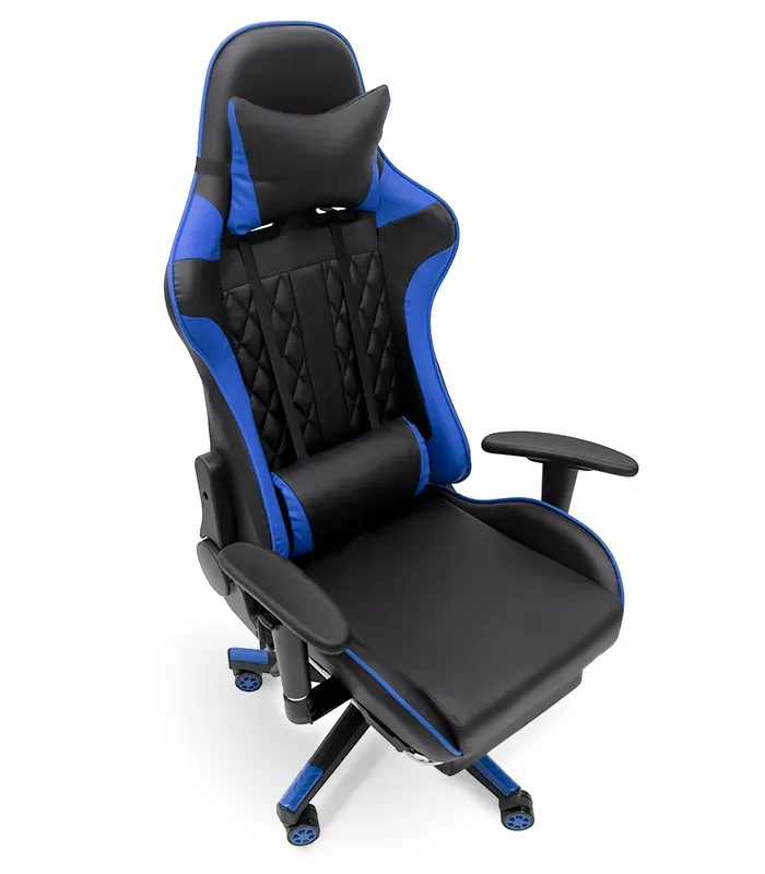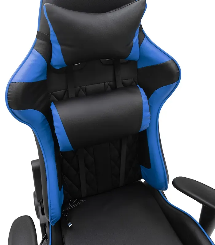 Геймерське комп'ютерне крісло з масажером, ергономічними подушками та підставкою для ніг, Чорний/Синій (G900) (G900)