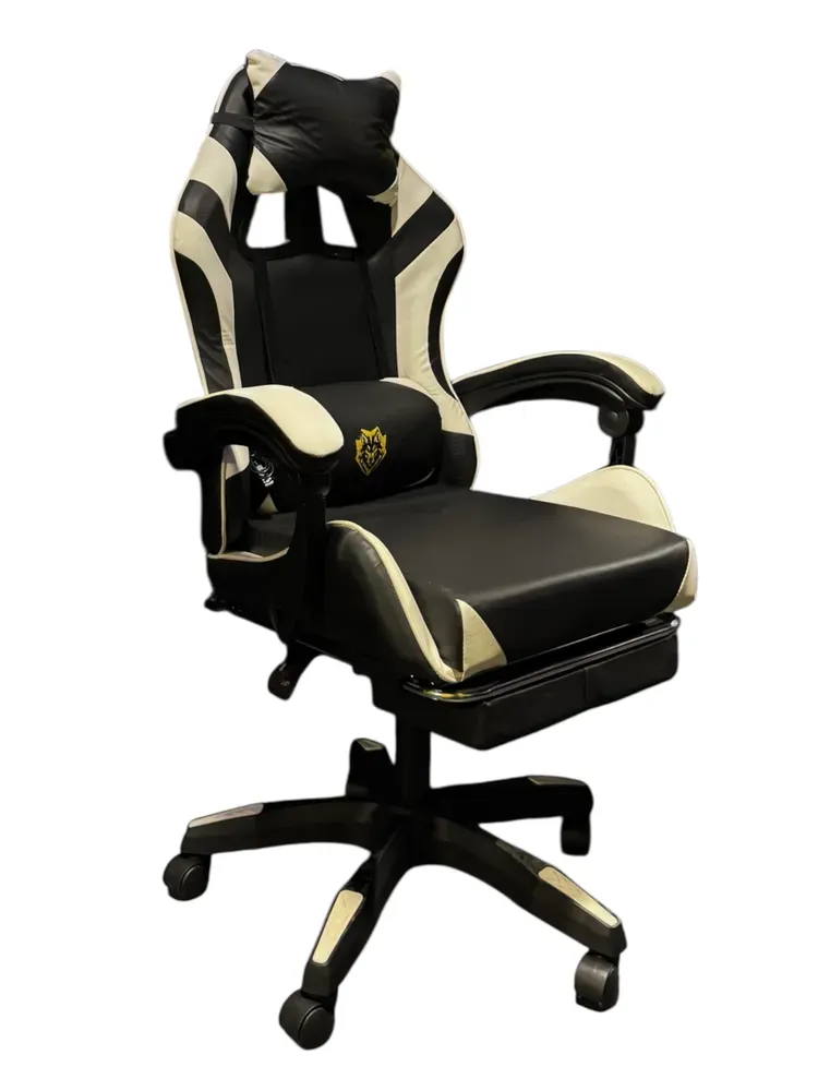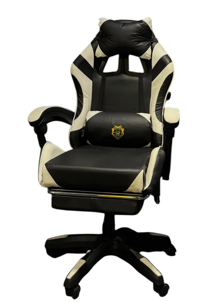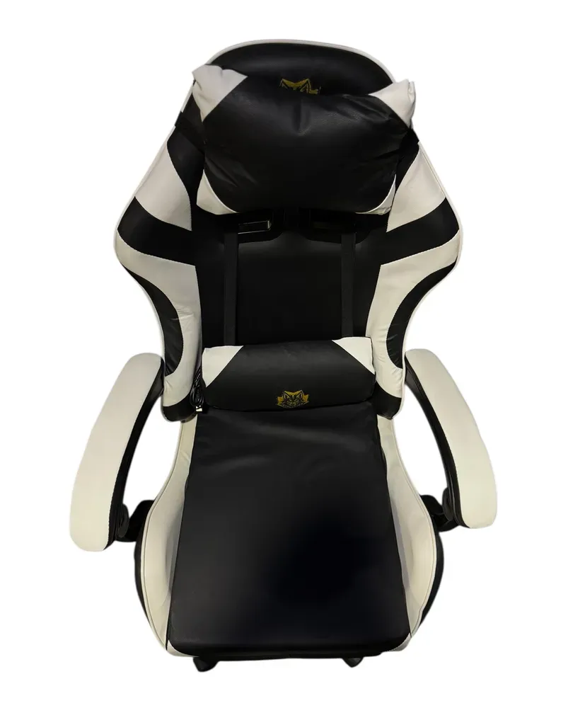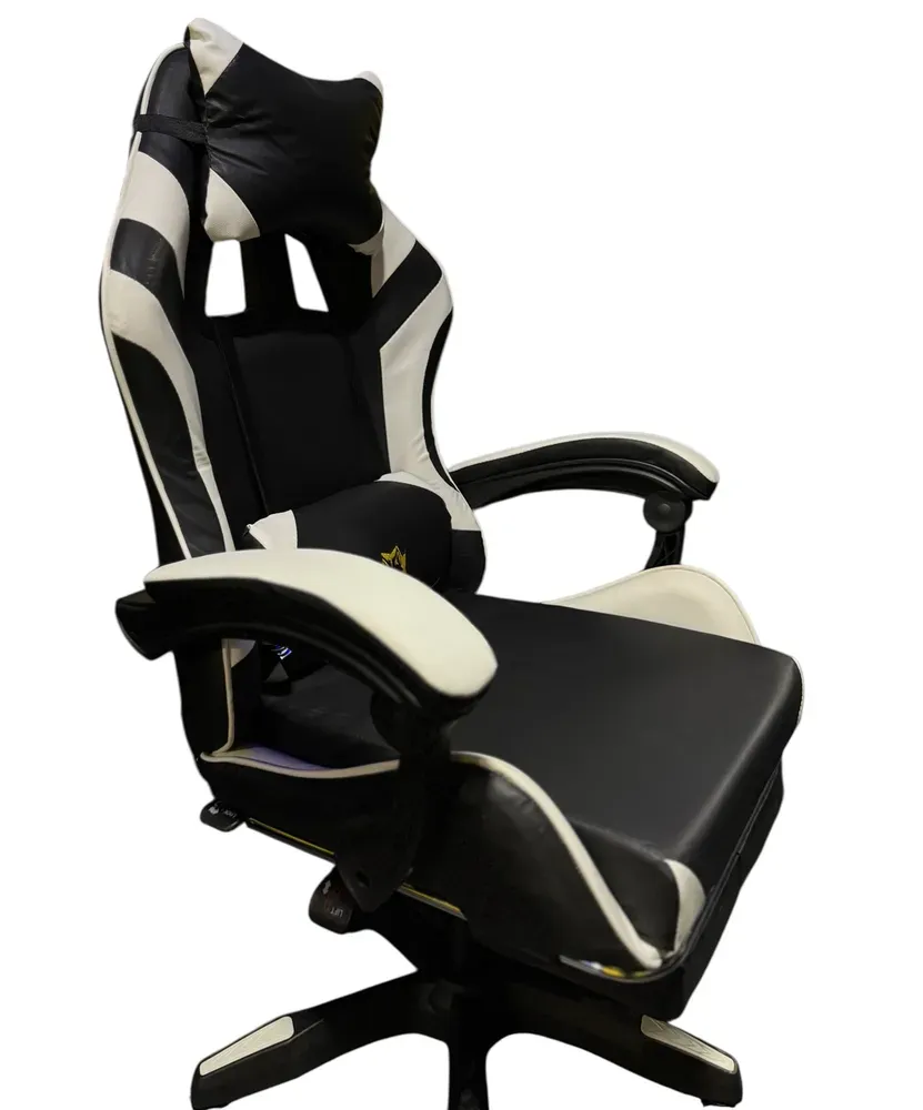 Геймерське крісло Primaveo з ергономічними подушками та висувною підставкою для ніг, Чорний/Білий (G1156)