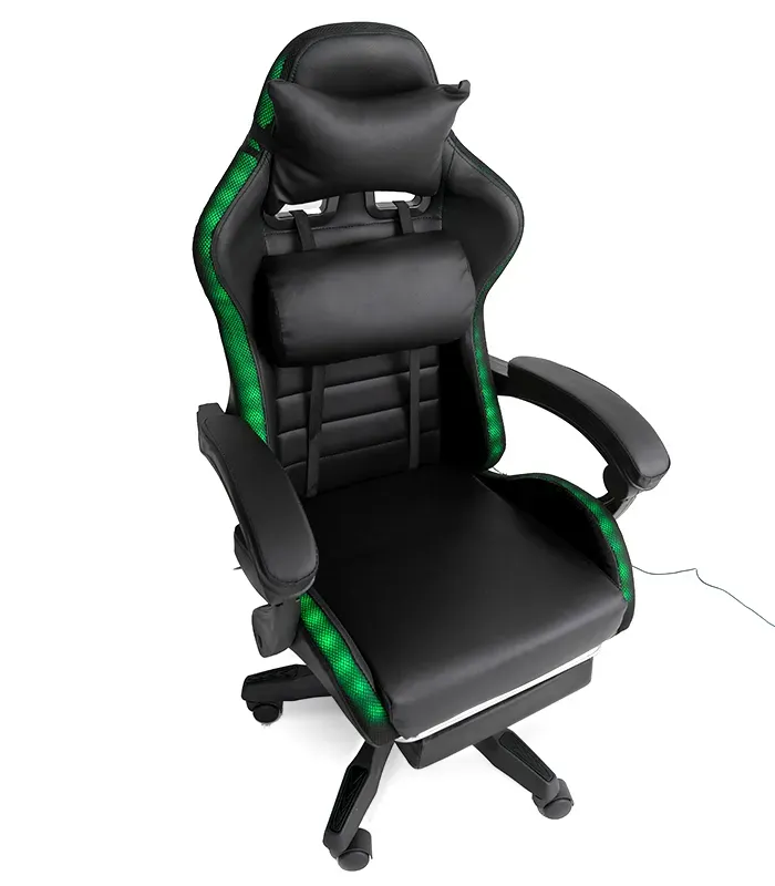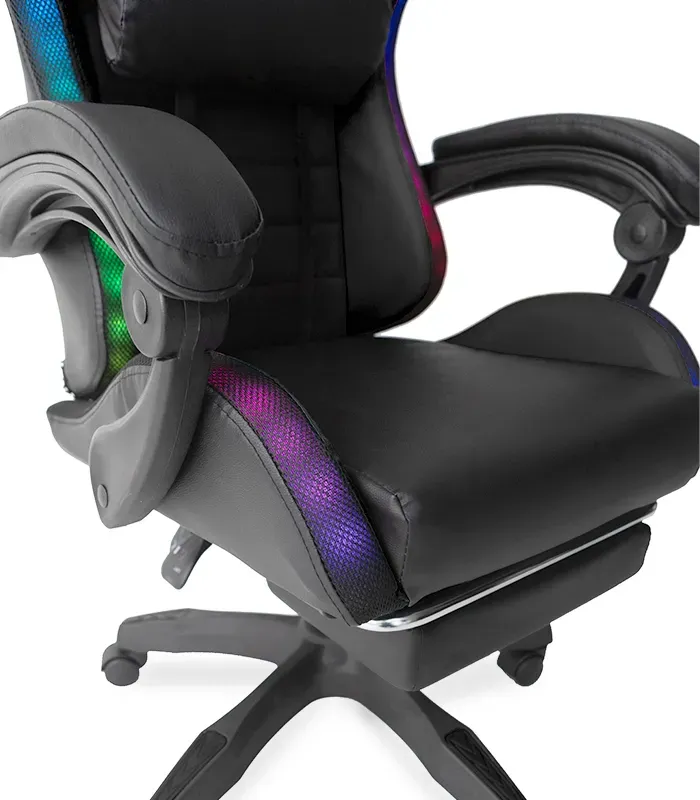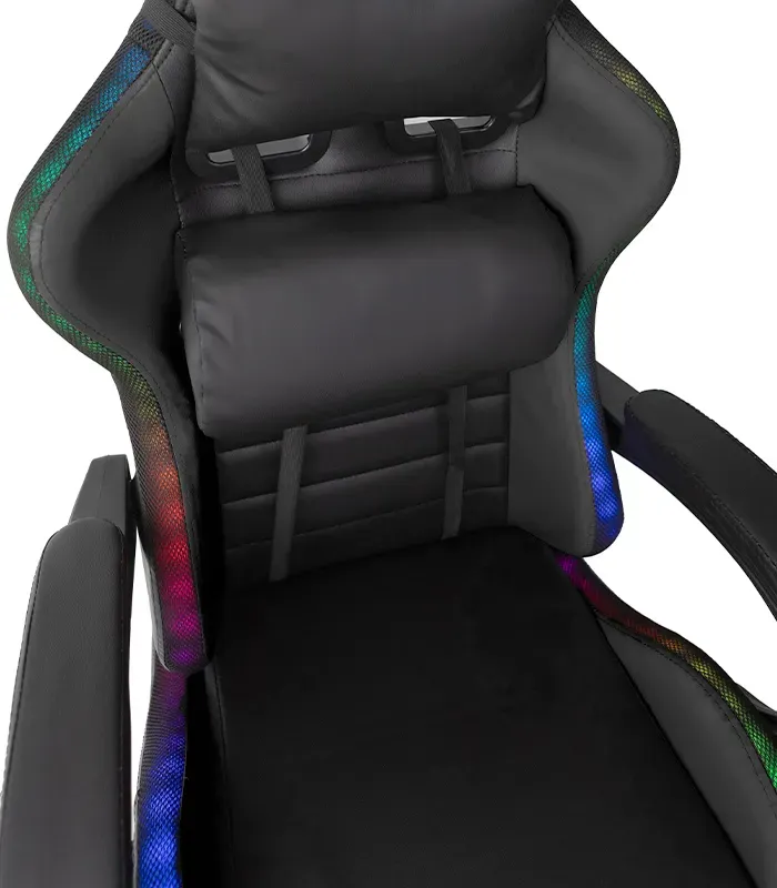 Світлодіодне ігрове крісло - це не лише предмет меблів, але й справжній оазис комфорту, створений з думкою про геймерів-ентузіастів. Його унікальна конструкція забезпечує оптимальну підтримку хребта, усуваючи ризик виникнення болю в спині, який часто супроводжує сидіння в неправильному положенні протягом тривалого періоду часу. Регульовані шийні та поперекові подушки дозволяють кріслу ідеально підлаштовуватися під форму тіла, гарантуючи комфорт, який дозволяє зосередитися на іграх або роботі протягом багатьох годин поспіль. Для повного розслаблення крісло також оснащене функцією масажу, розташованою в нижній подушці, що робить кожну мить, проведену в ньому, справжньою насолодою. Це крісло є ідеальним поєднанням комфорту, стилю та технологій, щоб задовольнити потреби будь-якого геймера.