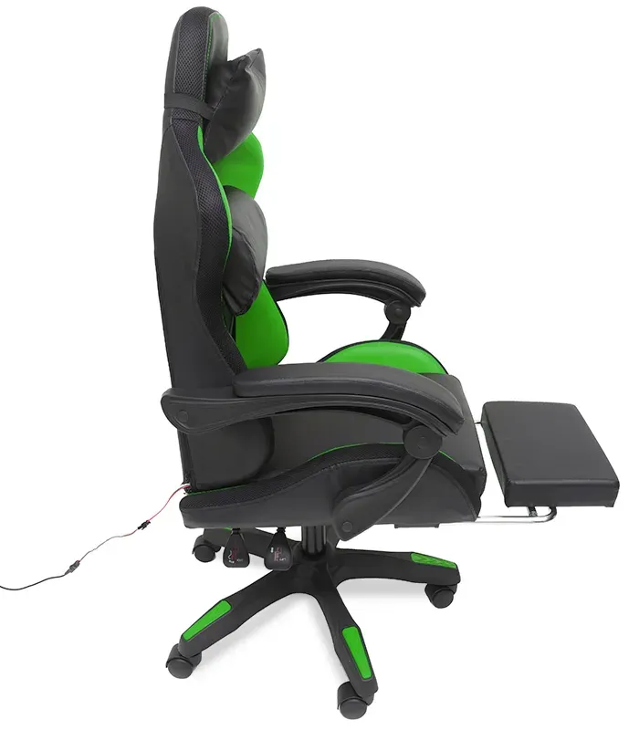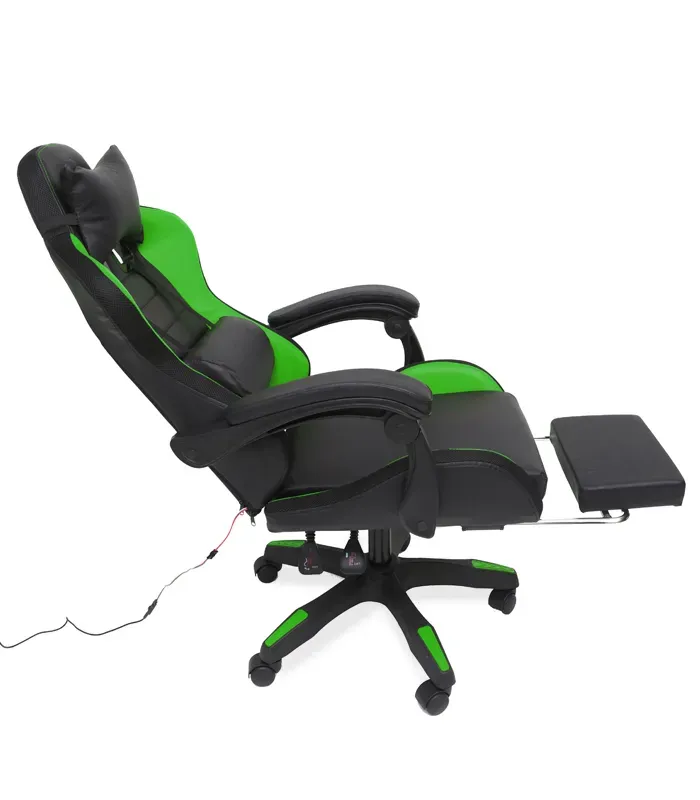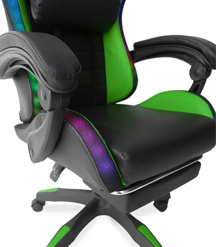 Геймерське крісло з RGB підсвіткою, подушками та висувною підставкою для ніг, Чорний/Зелений (G898) (G898)