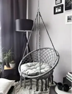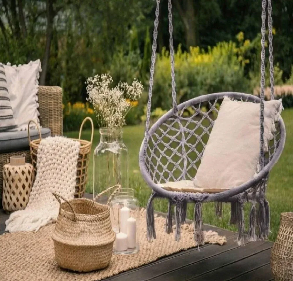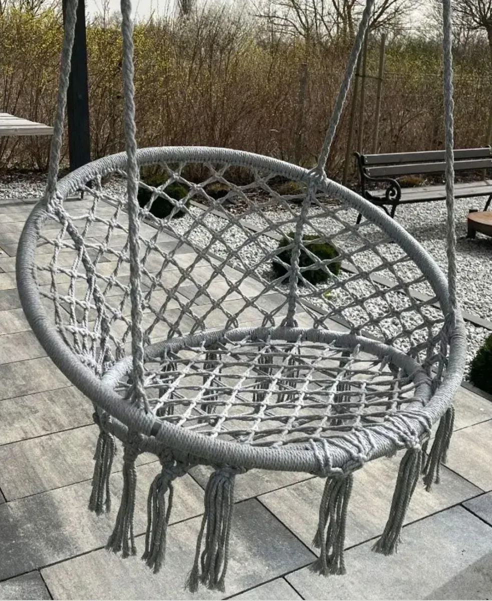 Підвісне крісло дає можливість створити власний притулок, сповнений краси, комфорту та натхнення, запрошуючи вас створювати незабутні моменти в оточенні природи та естетичного дизайну.