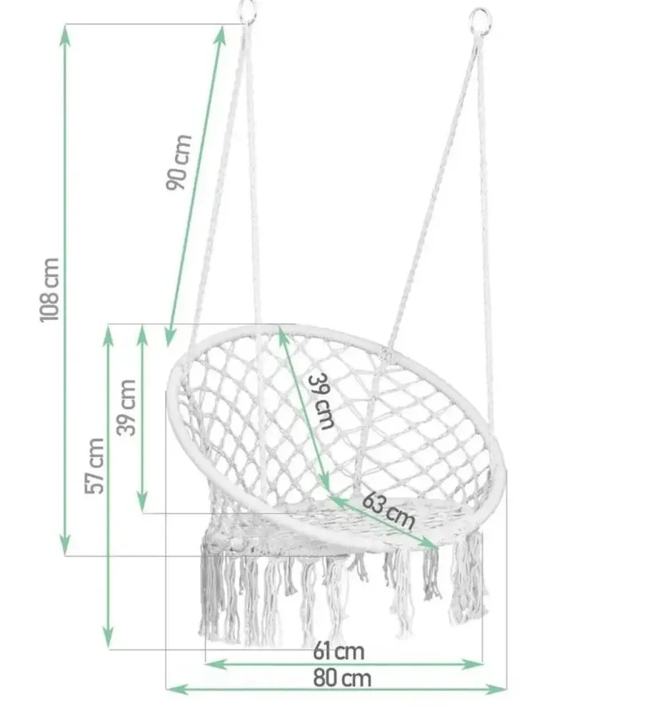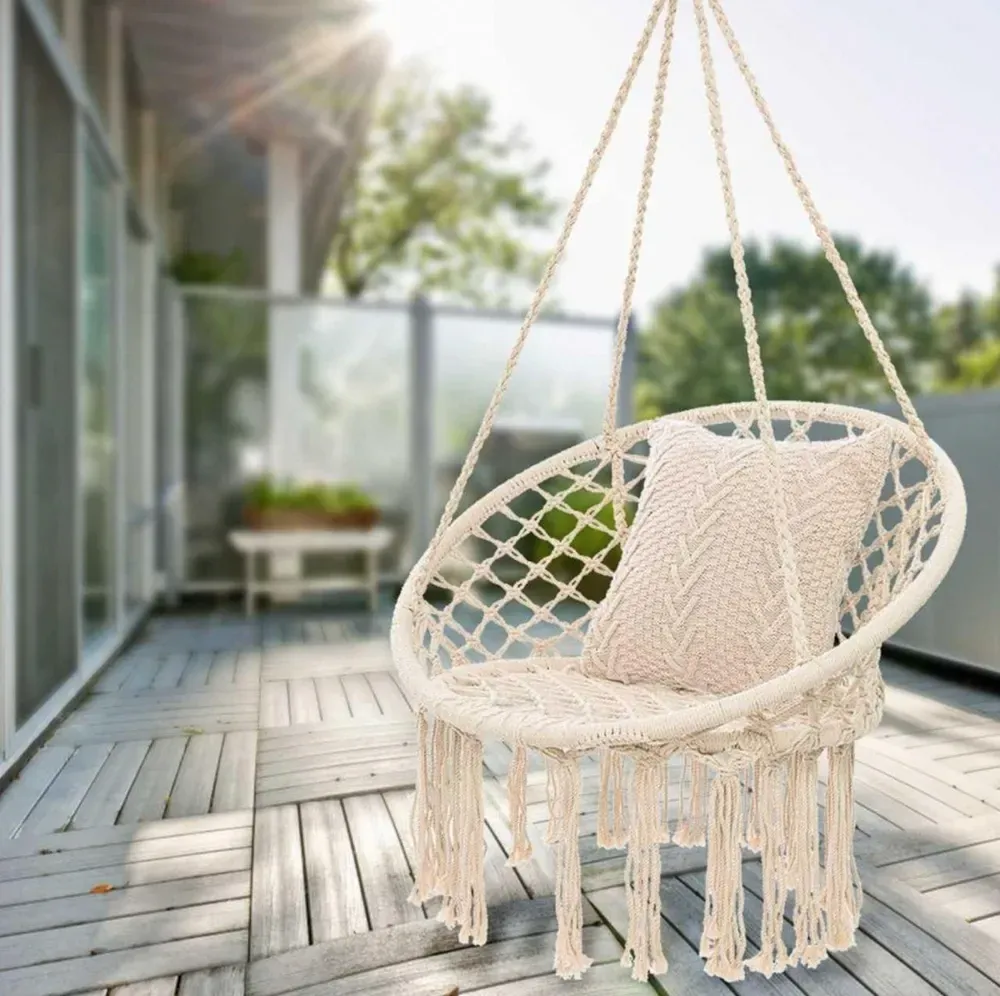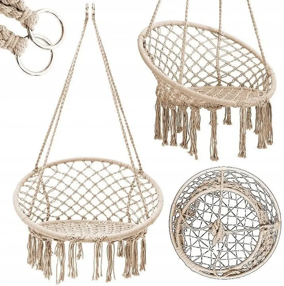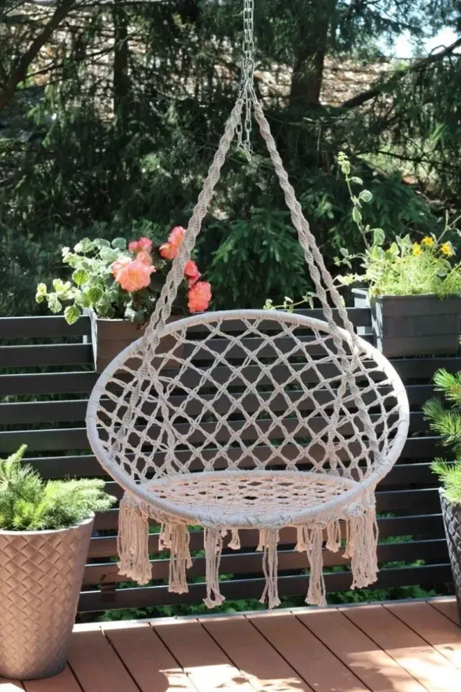 Унікальне підвісне ажурне крісло і гойдалка, які стануть унікальним предметом меблів у вашому домі. Його можна повісити в приміщенні, на терасі або в саду. Він зробить будь-який інтер'єр привабливішим, декоративні плетіння і бахрома підкреслять сучасний дизайн і дадуть змогу розслабитися з улюбленою книжкою або музикою.