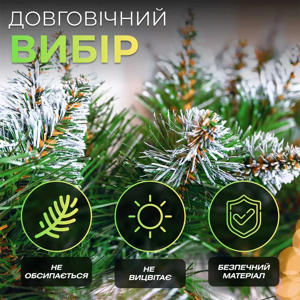 Хвойная гирлянда 2.8 м зеленая с белыми кончиками ветки ПВХ елки (KOS-HVO28)