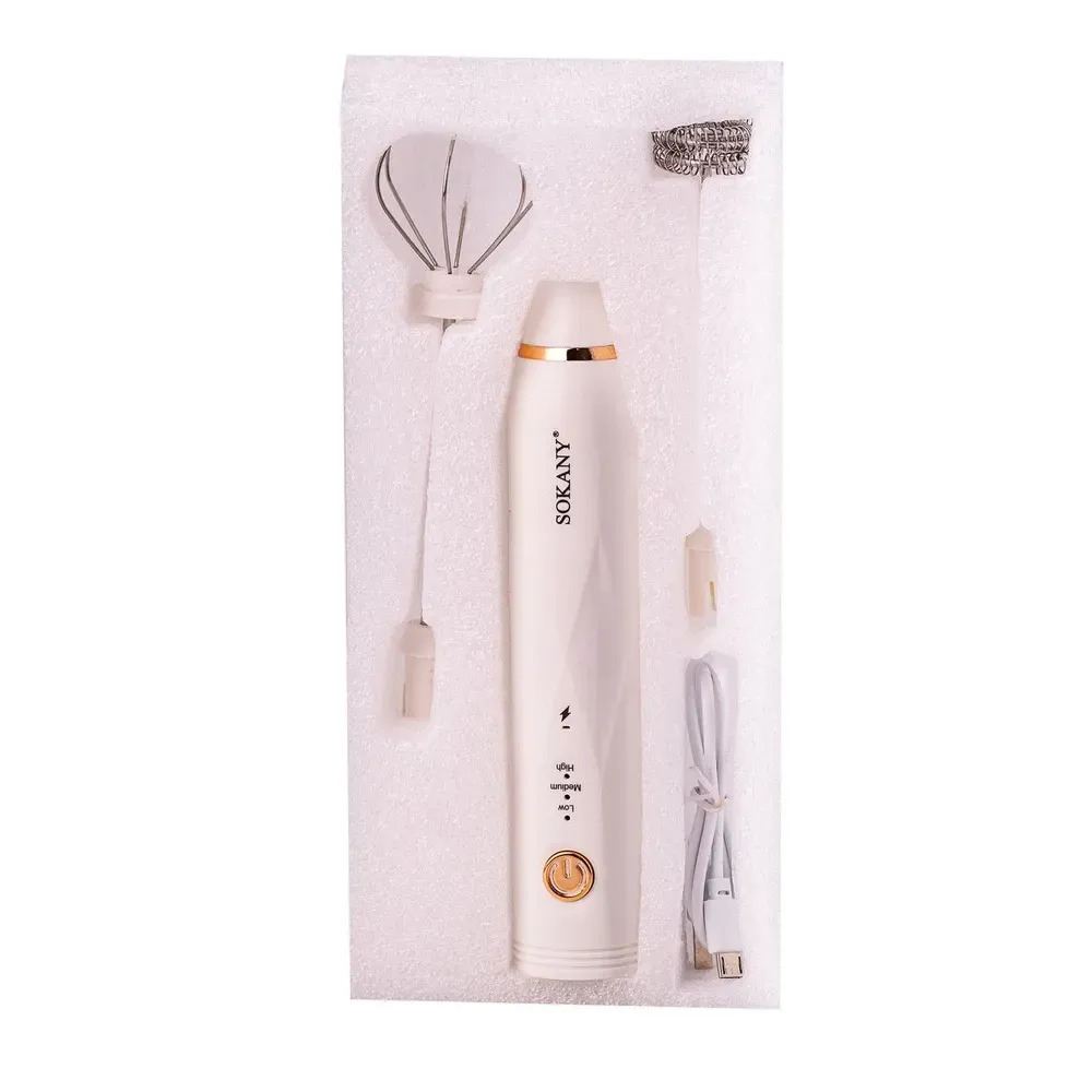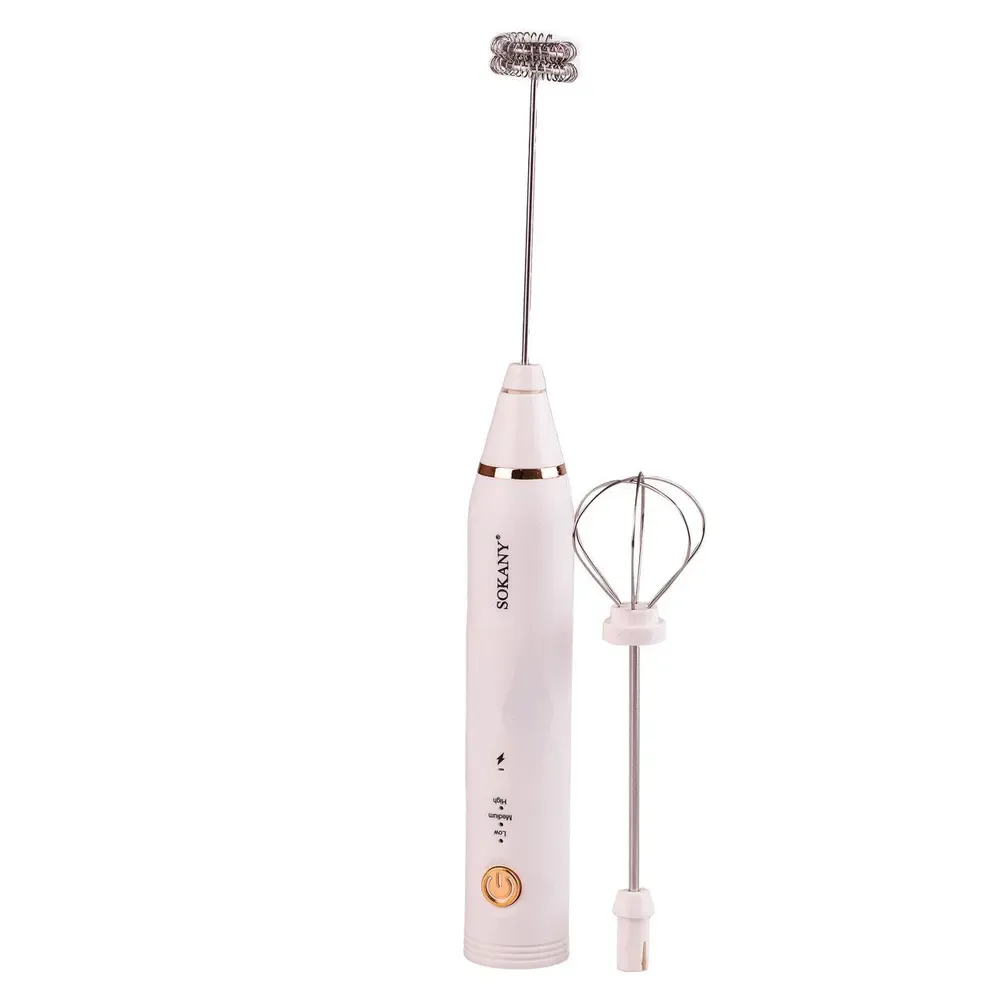 Капучинатор аккумуляторный 1200 мАч бесшумный с USB зарядкой 2 насадки Sokany SK-1772 Белый (SK1772W)