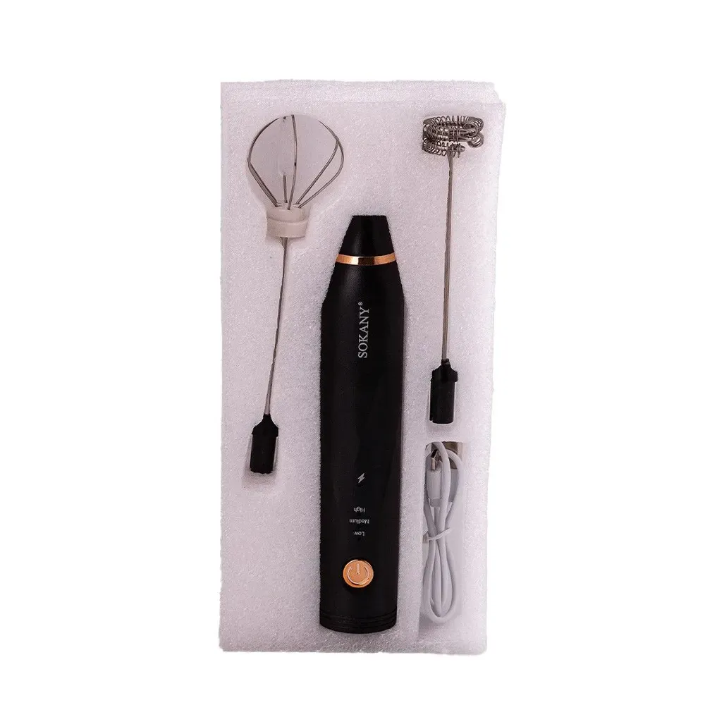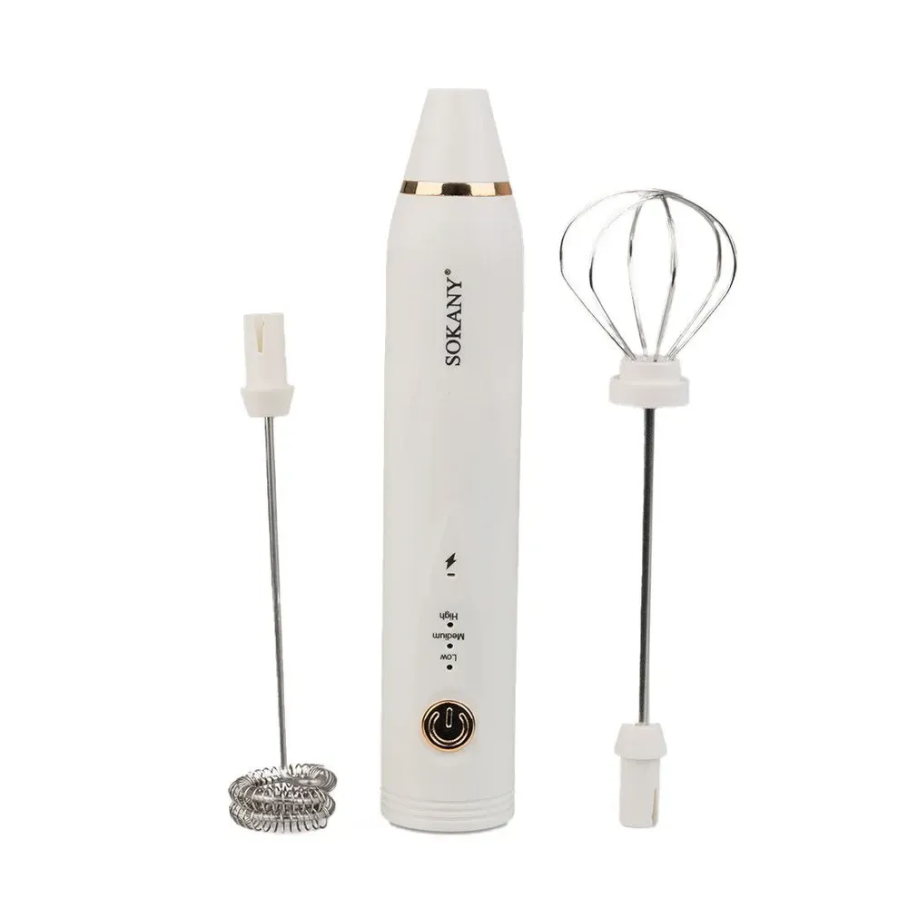 Капучинатор аккумуляторный 1200 мАч бесшумный с USB зарядкой 2 насадки Sokany SK-201A (SK201AW)