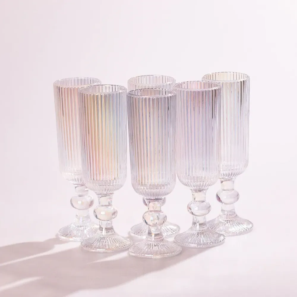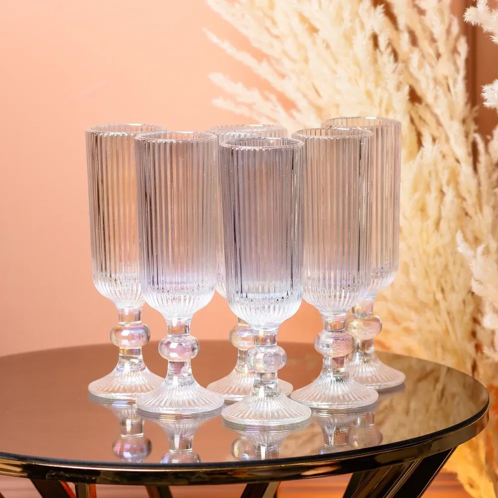 Стакан для шампанского фигурный прозрачный ребристый из толстого стекла набор 6 шт Rainbow (HP7116RB)