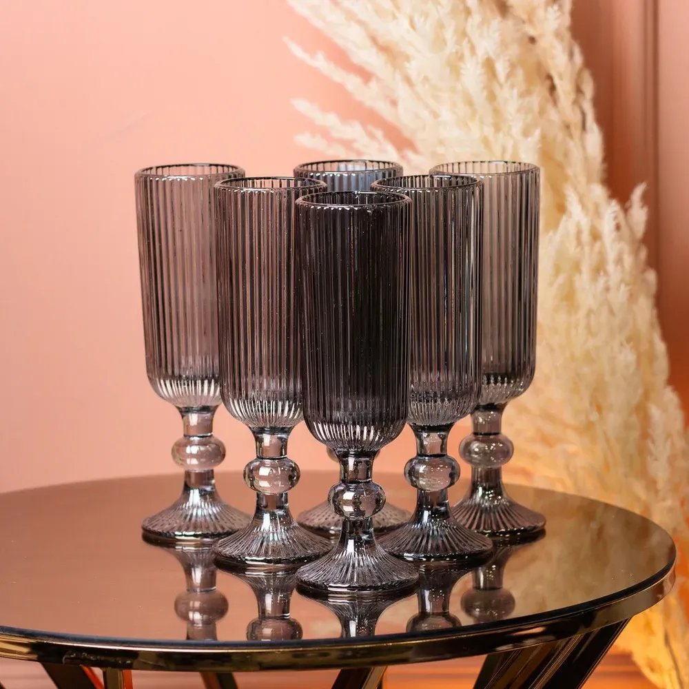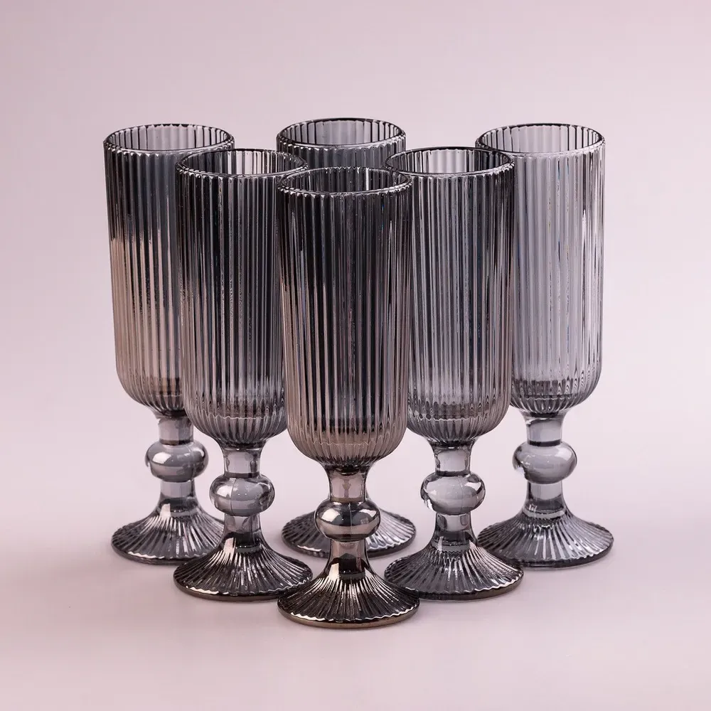 Стакан для шампанского фигурный прозрачный ребристый из толстого стекла набор 6 шт Серый (HP7116G)