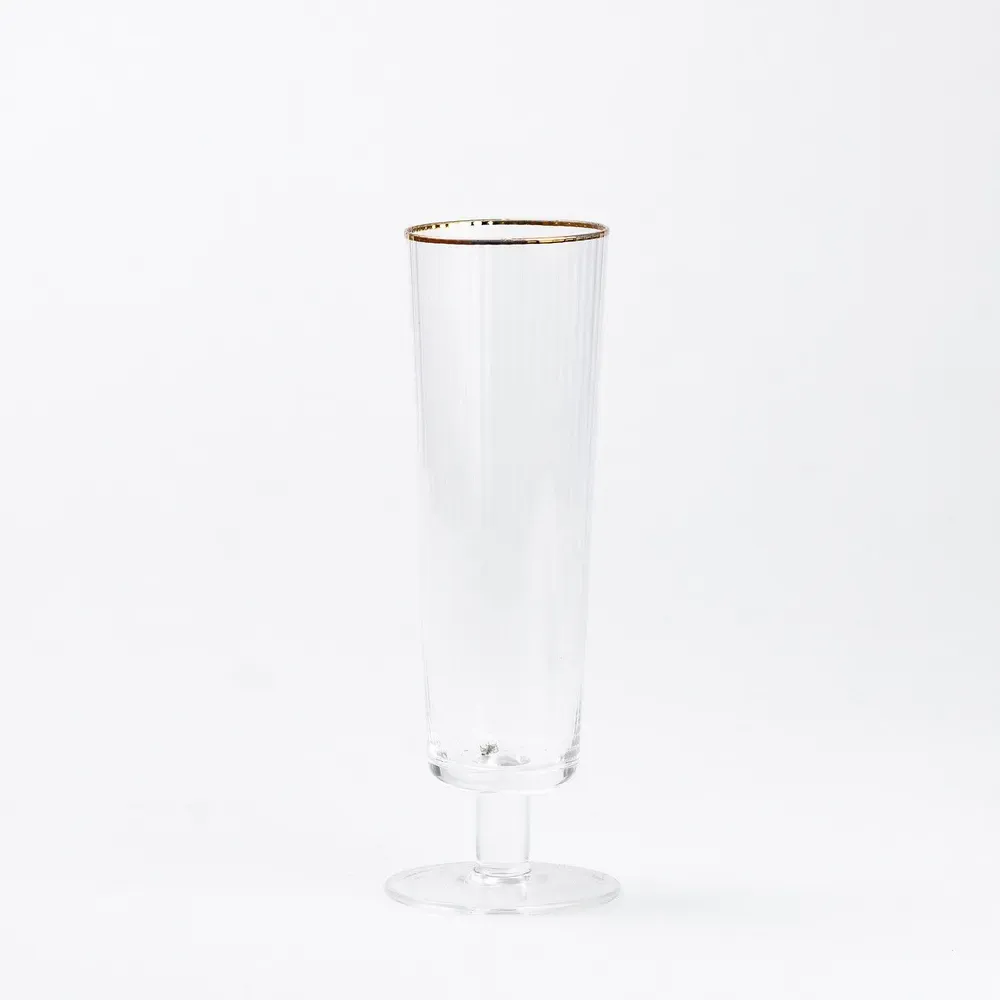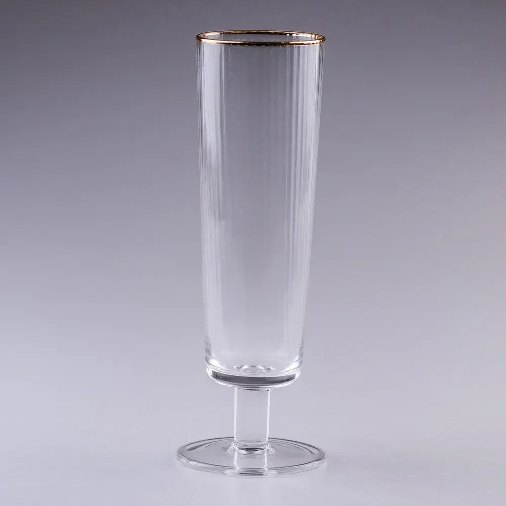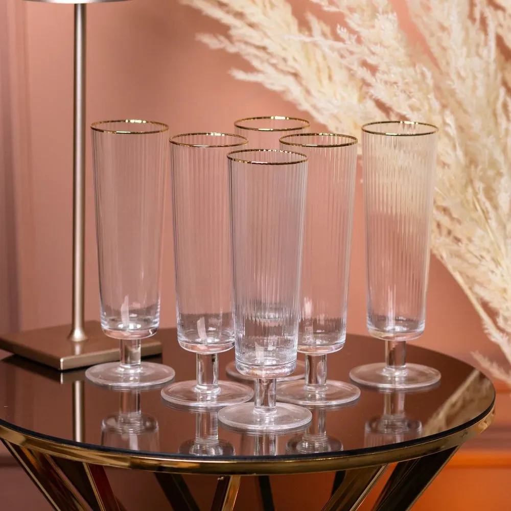 Бокал для шампанского с тонким стеклом ребристый с золотым ободком 6 шт. (HP82)