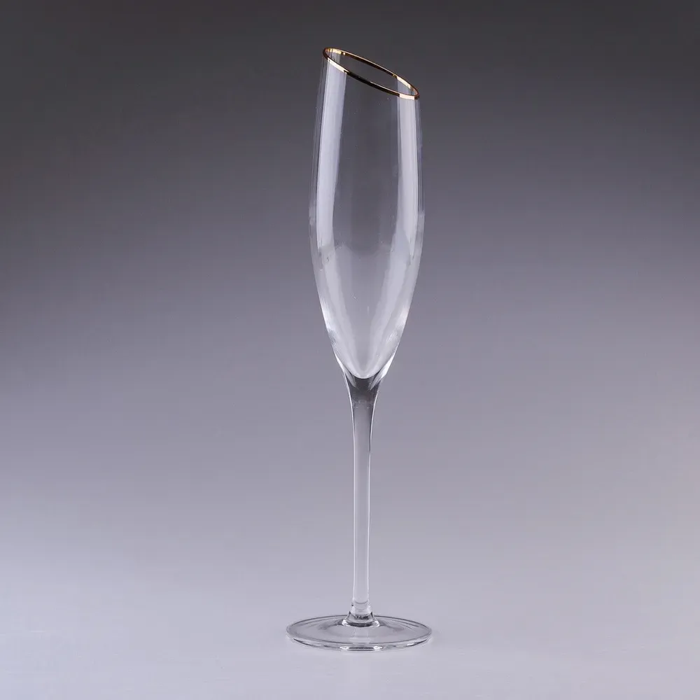 Бокал для шампанского фигурный из тонкого ребристого стекла с золотым ободком набор 6 шт (HP79)