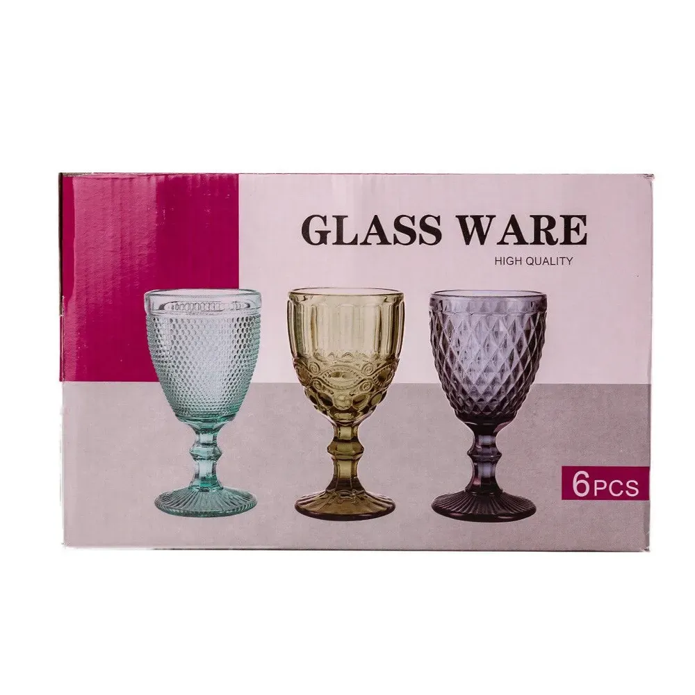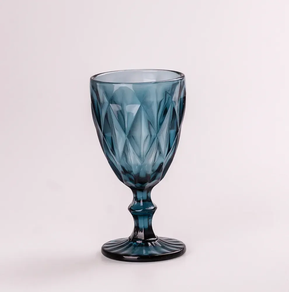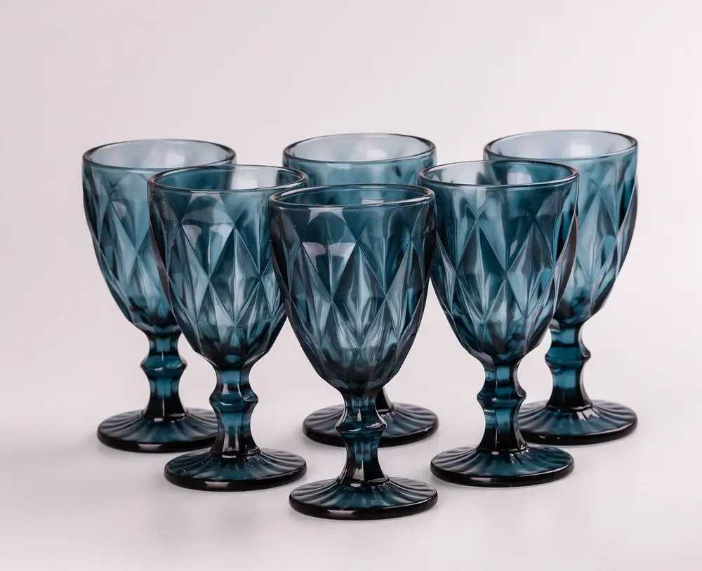 Бокал для вина высокий фигурный граненый из толстого стекла набор 6 шт. (HP035BL)