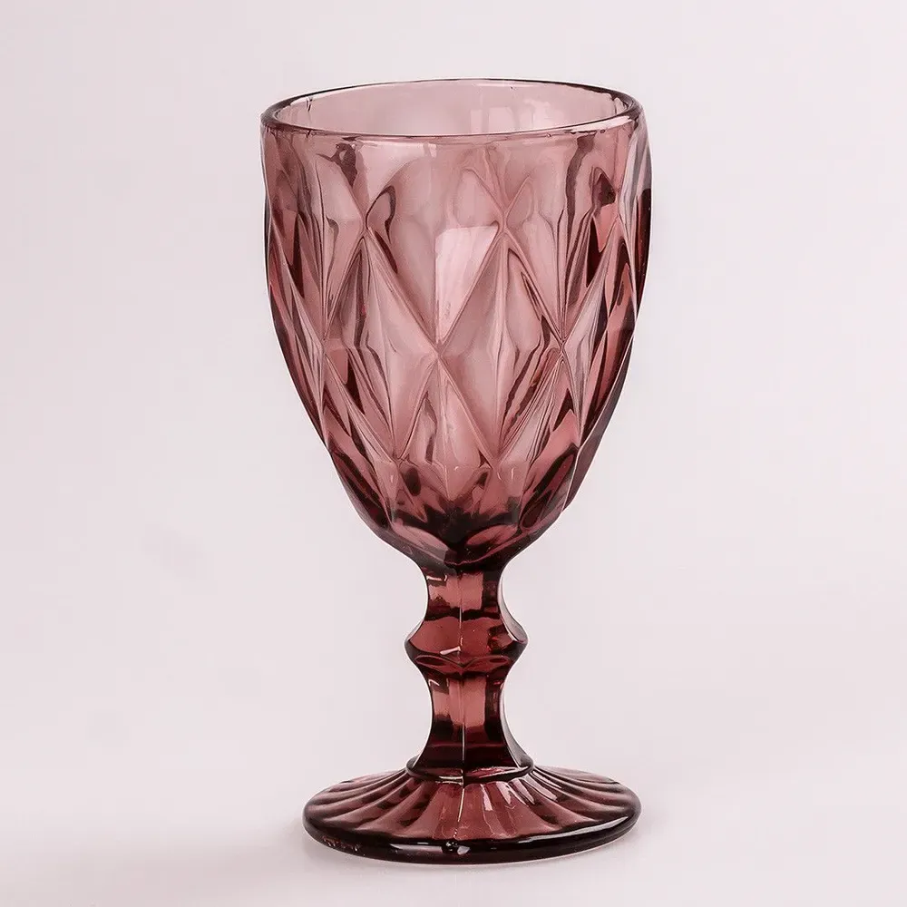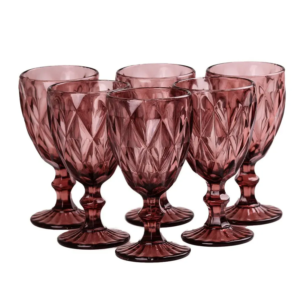 Бокал для вина высокий фигурный граненый из толстого стекла набор 6 шт. (HP035P)