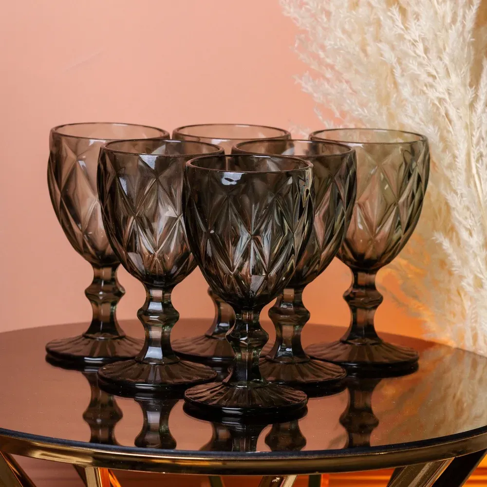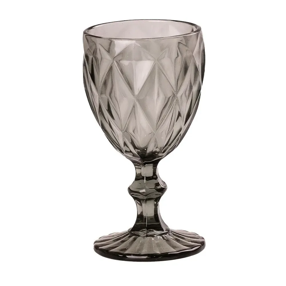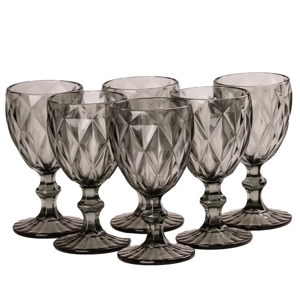 Бокал для вина высокий фигурный граненный набор из толстого стекла 6 шт Серый (HP035G)