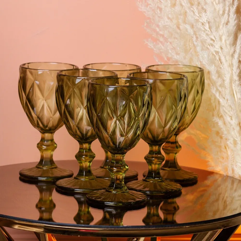 Бокал для вина высокий фигурный граненый из толстого стекла набор 6 шт. (HP035GR)