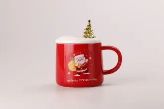 Керамическая чашка 500 мл Merry Christmas с крышкой и ложкой Красный (HPCY8279R)
