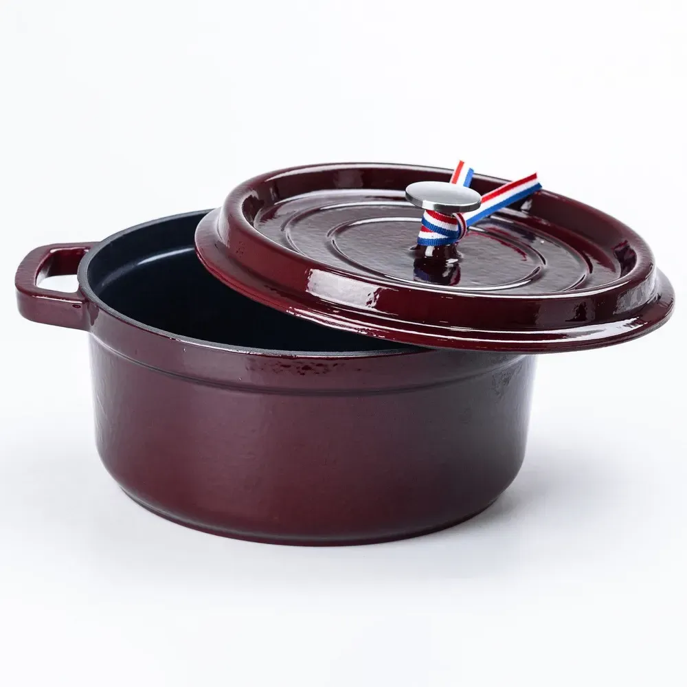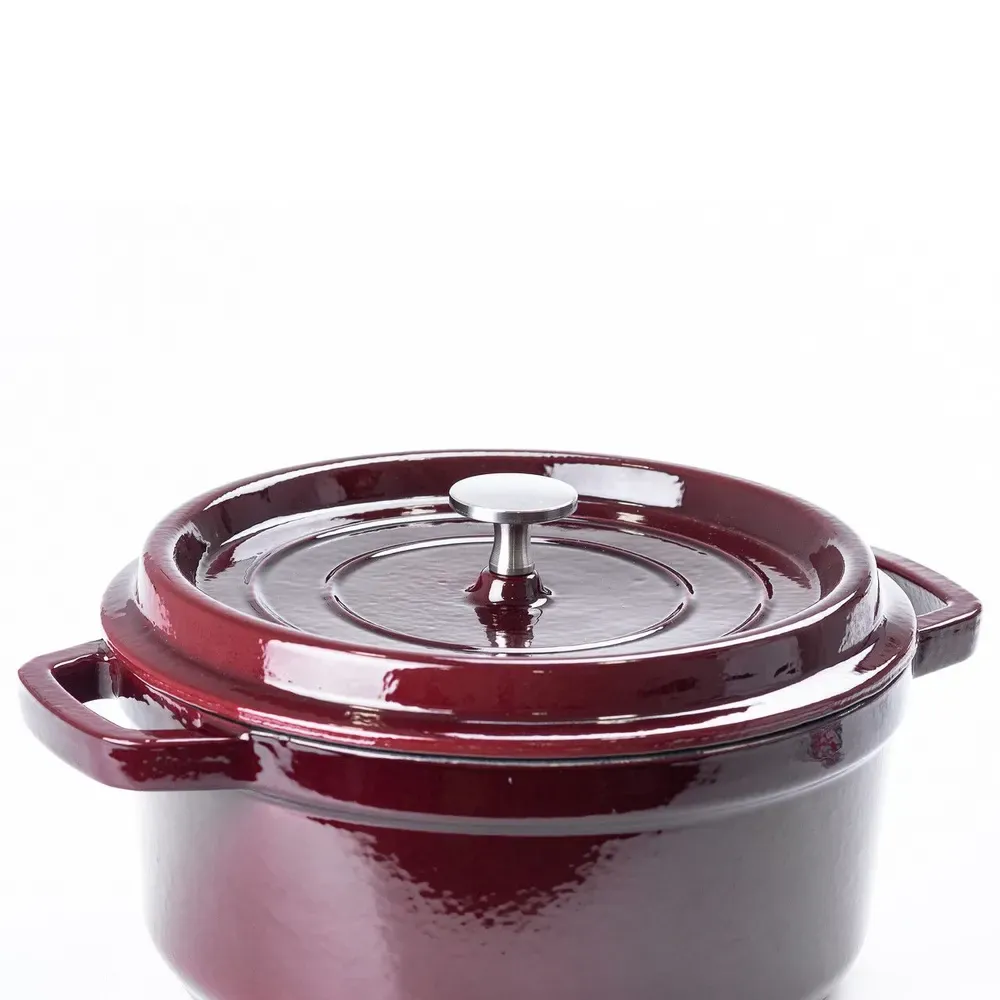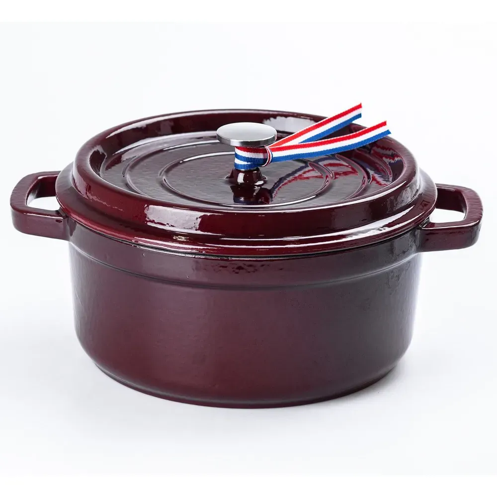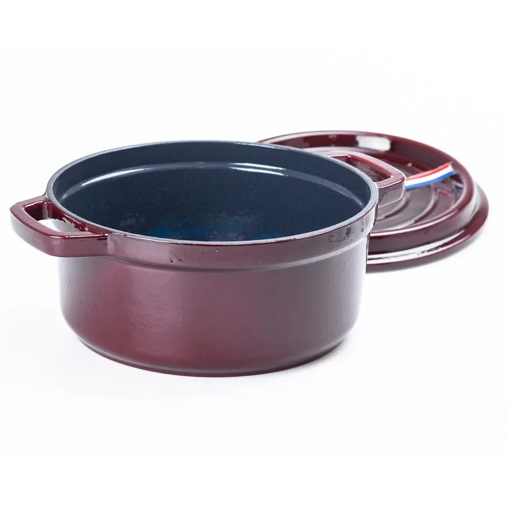 Кокотница чугунная с эмалированным покрытием 3л, диаметр 23см, темно-красный (HPFLG2RED)