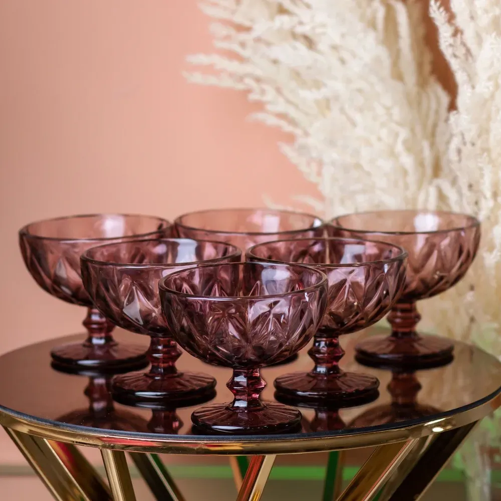 Креманка для мороженого фигурная граненая из толстого стекла набор 6 шт. (HP037P)