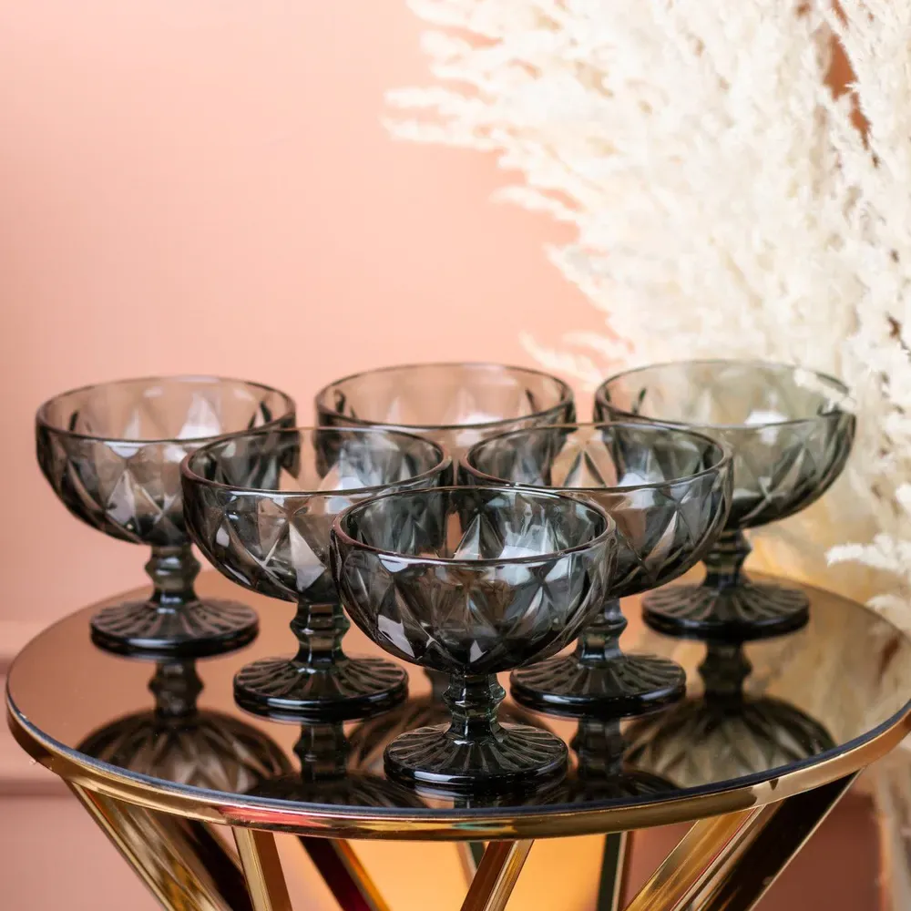 Креманка для мороженого фигурная граненая из толстого стекла набор 6 шт Серый (HP037G)