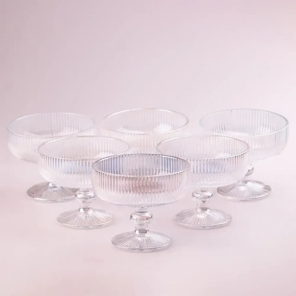 Креманка для мороженого фигурная прозрачная ребристая из толстого стекла 6 шт Rainbow (HP7117RB)