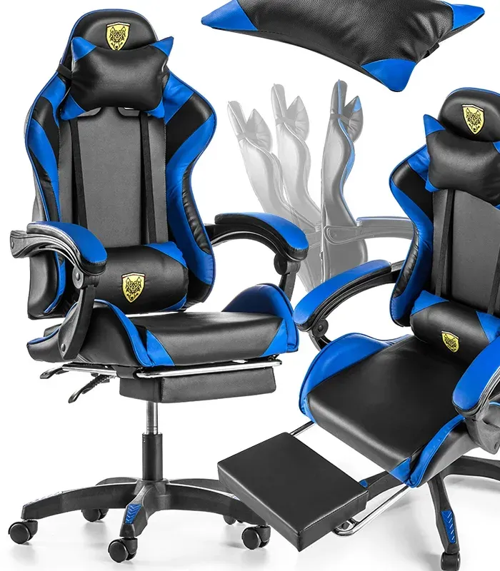 Крісло геймерське G847 синє з підставкою для ніг
