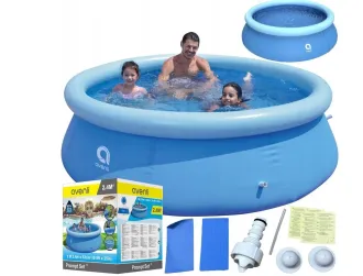 Бассейн изготовлен из 3-слойного ПВХ с дополнительным покрытием для защиты от повреждений. Этот материал также делает его стойким к ультрафиолетовым лучам, защищая бассейн от выцветания. Бассейн можно очень легко сложить или разложить. Размер бассейна 240 х 63 см и вместимость 2074 литра позволяют одновременно принимать многие люди. Он имеет надувное кольцо в верхней части, что обеспечивает комфортную поддержку при использовании. Конструкция, не требующая каркаса, повышает безопасность детей.