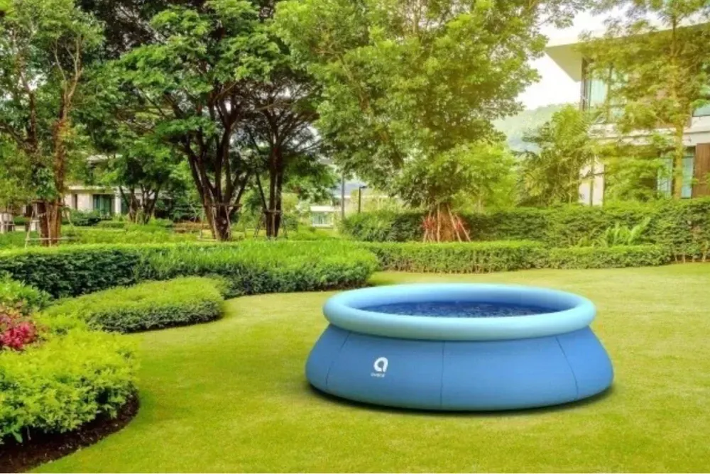 - Бассейн имеет надувное кольцо в верхней части для обеспечения комфортной поддержки при использовании.