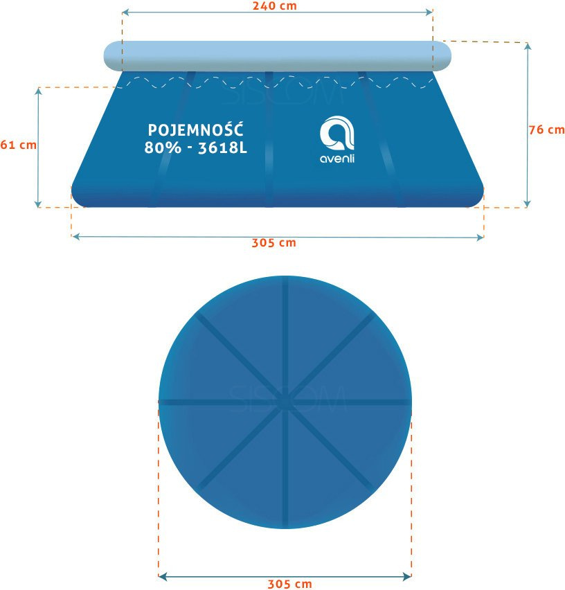 ► Діаметр дна басейну: 305 см