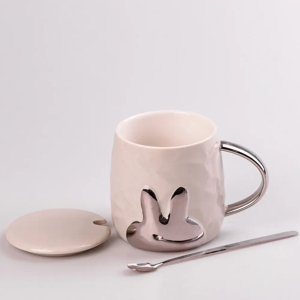 Кружка керамическая 300 мл Rabbit с крышкой и ложкой Бежевый (HPCYM0877T)