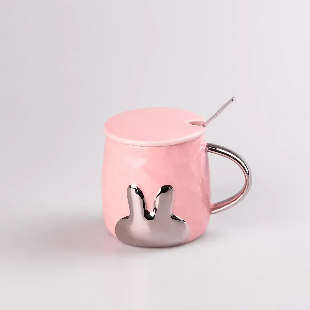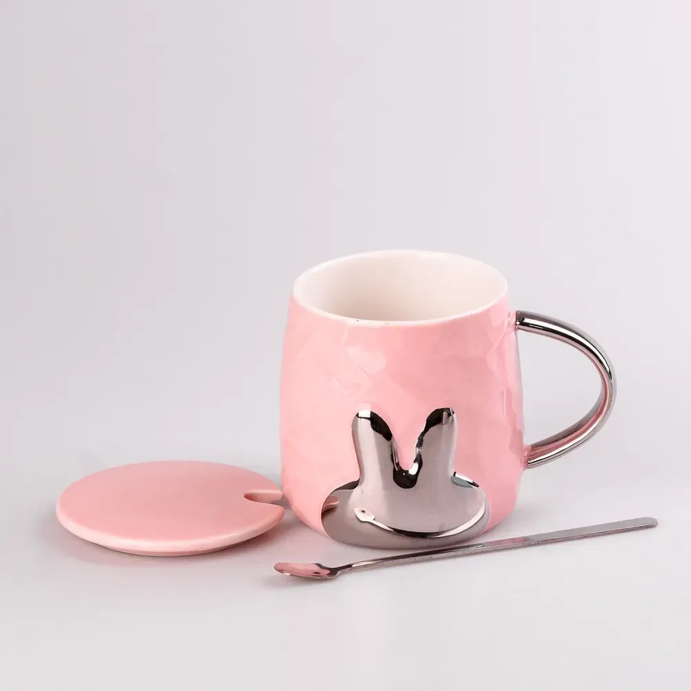 Кружка керамическая 300 мл Rabbit с крышкой и ложкой Розовый (HPCYM0877P)