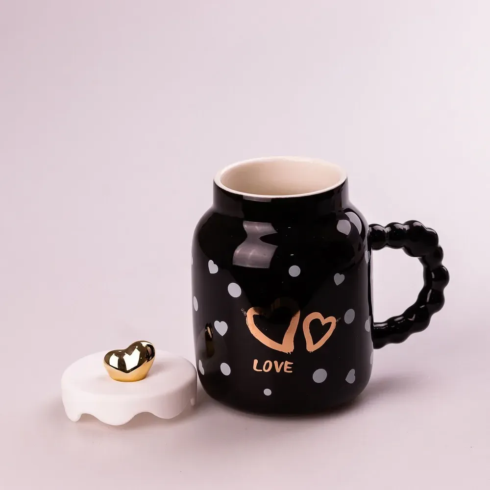 Кружка керамическая 400 мл Love с крышкой (HPCY8371B)