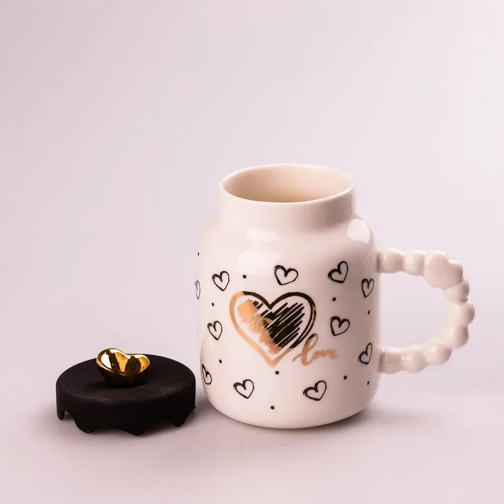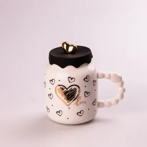 Кружка керамическая 400 мл Белая с черными сердечками (HPCY8371WB)